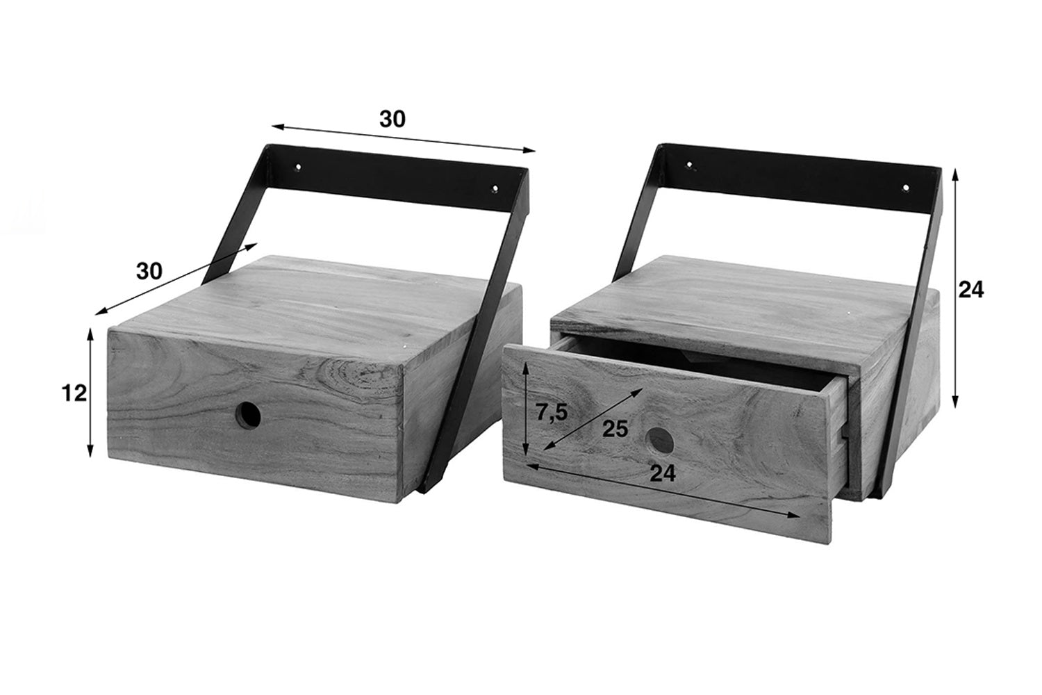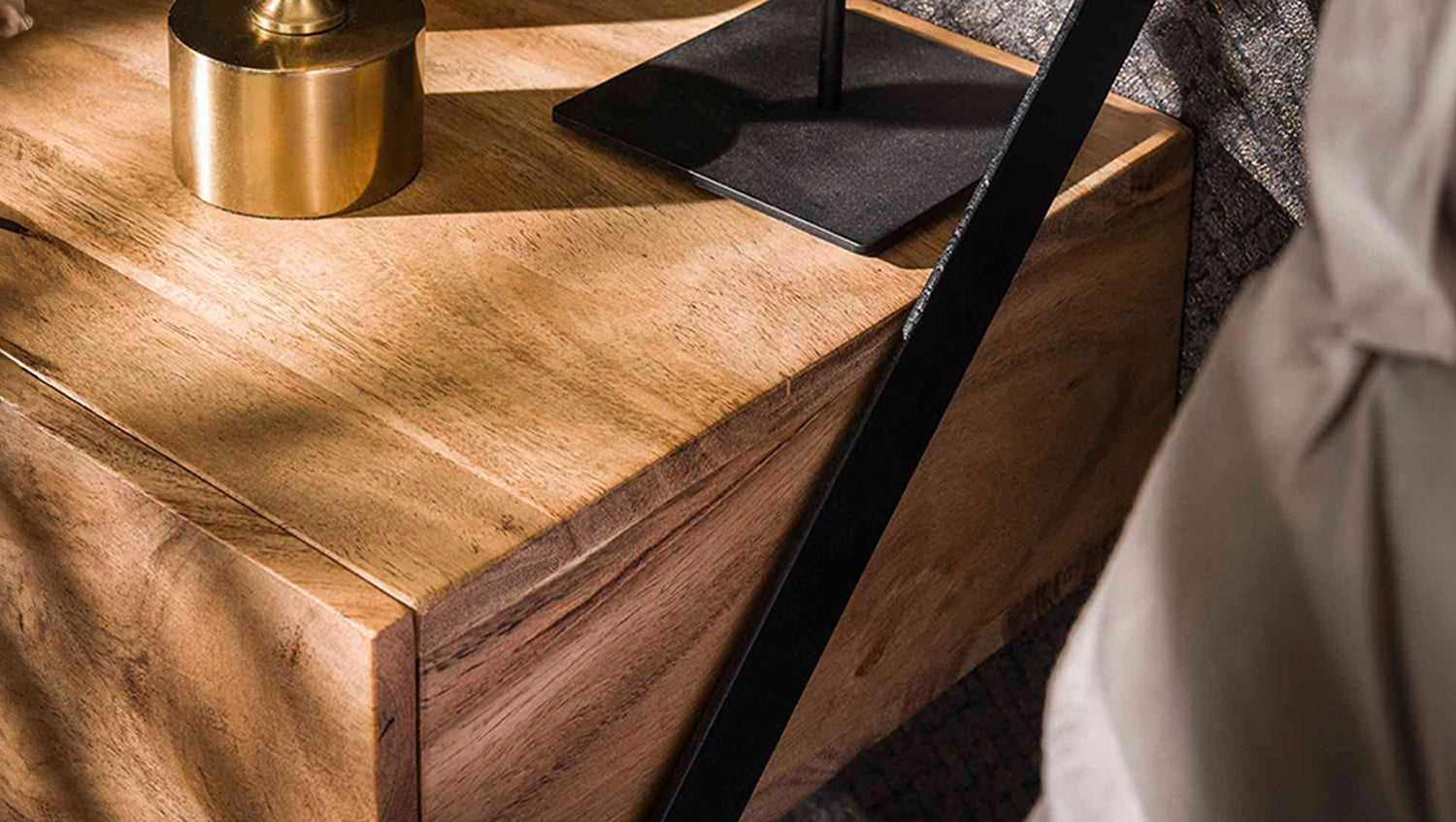 KAWOLA Nachttisch SEWU 2-tlg. hängend Akazie massiv natur 1 Schublade