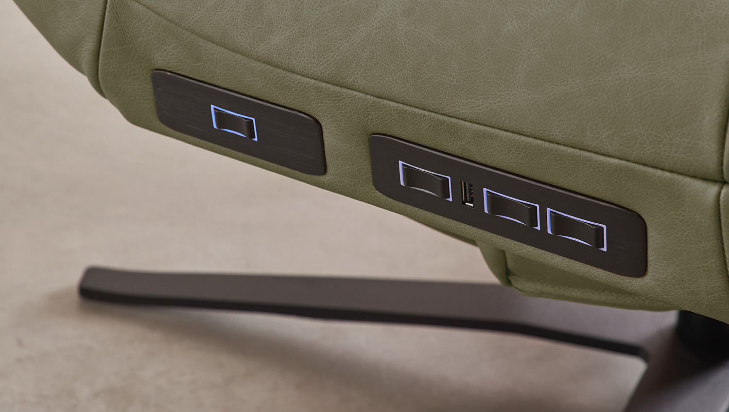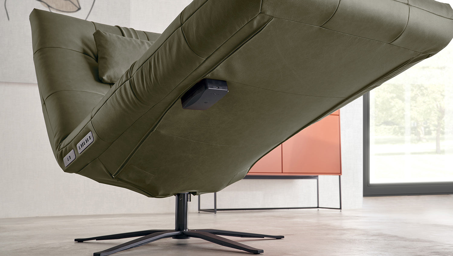 KAWOLA Relaxliege LETICIA motorisch Leder olivgrün