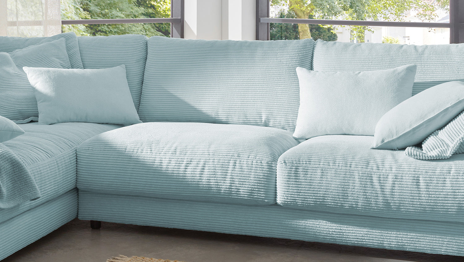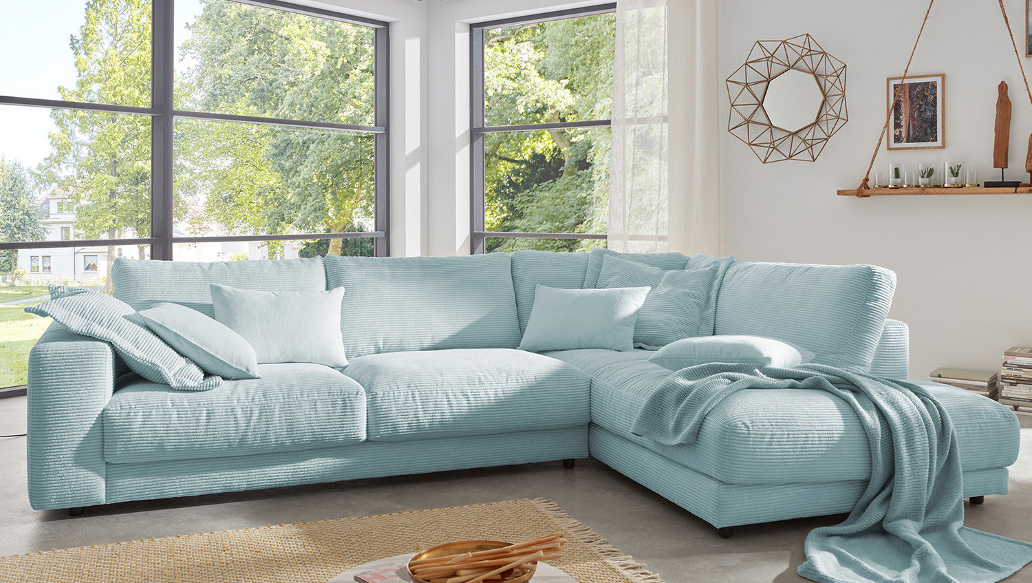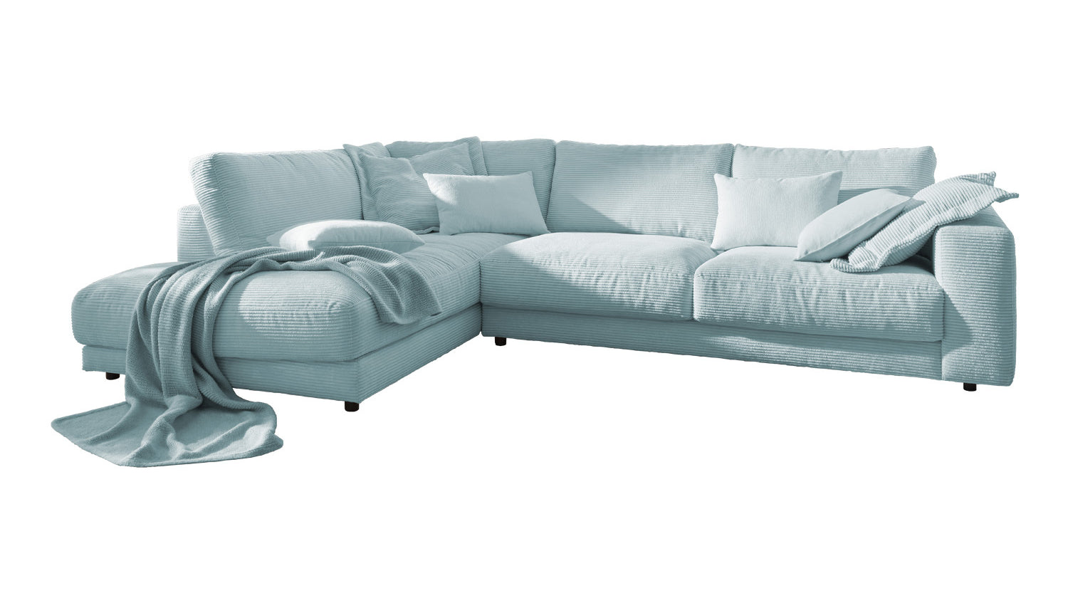 KAWOLA Sofa MADELINE Ecksofa Cord hellblau