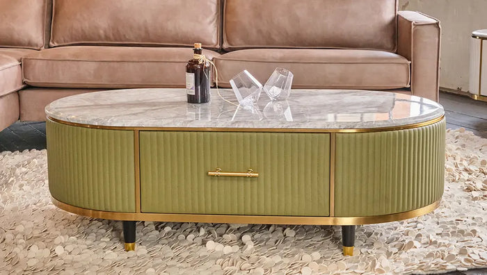 Die hochwertige Marmorplatte verleiht den Möbeln eine zeitlose Eleganz. Mit ihrer natürlichen Struktur und feinen Maserung ist sie ein echter Blickfang und sorgt gleichzeitig für Robustheit und Langlebigkeit. Die glatte Oberfläche ist pflegeleicht und widerstandsfähig – perfekt für den täglichen Gebrauch.