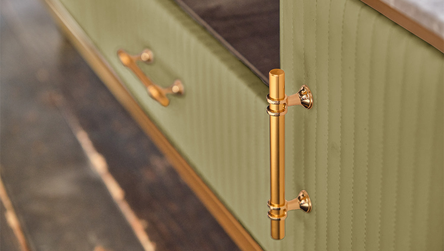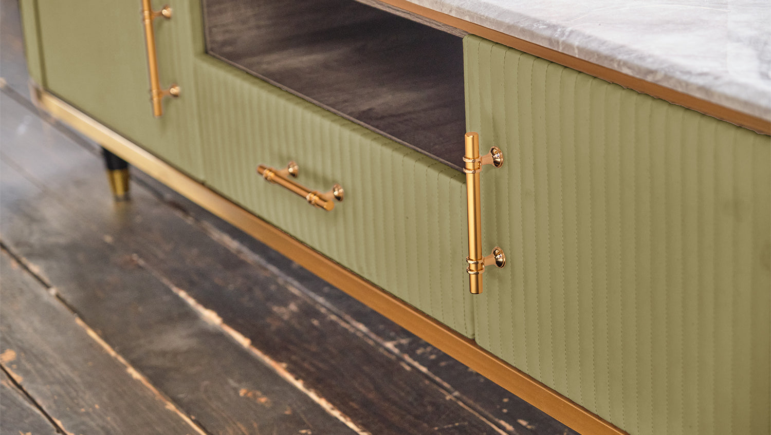 • Füße und Rahmen aus goldfarbenem Edelstahl