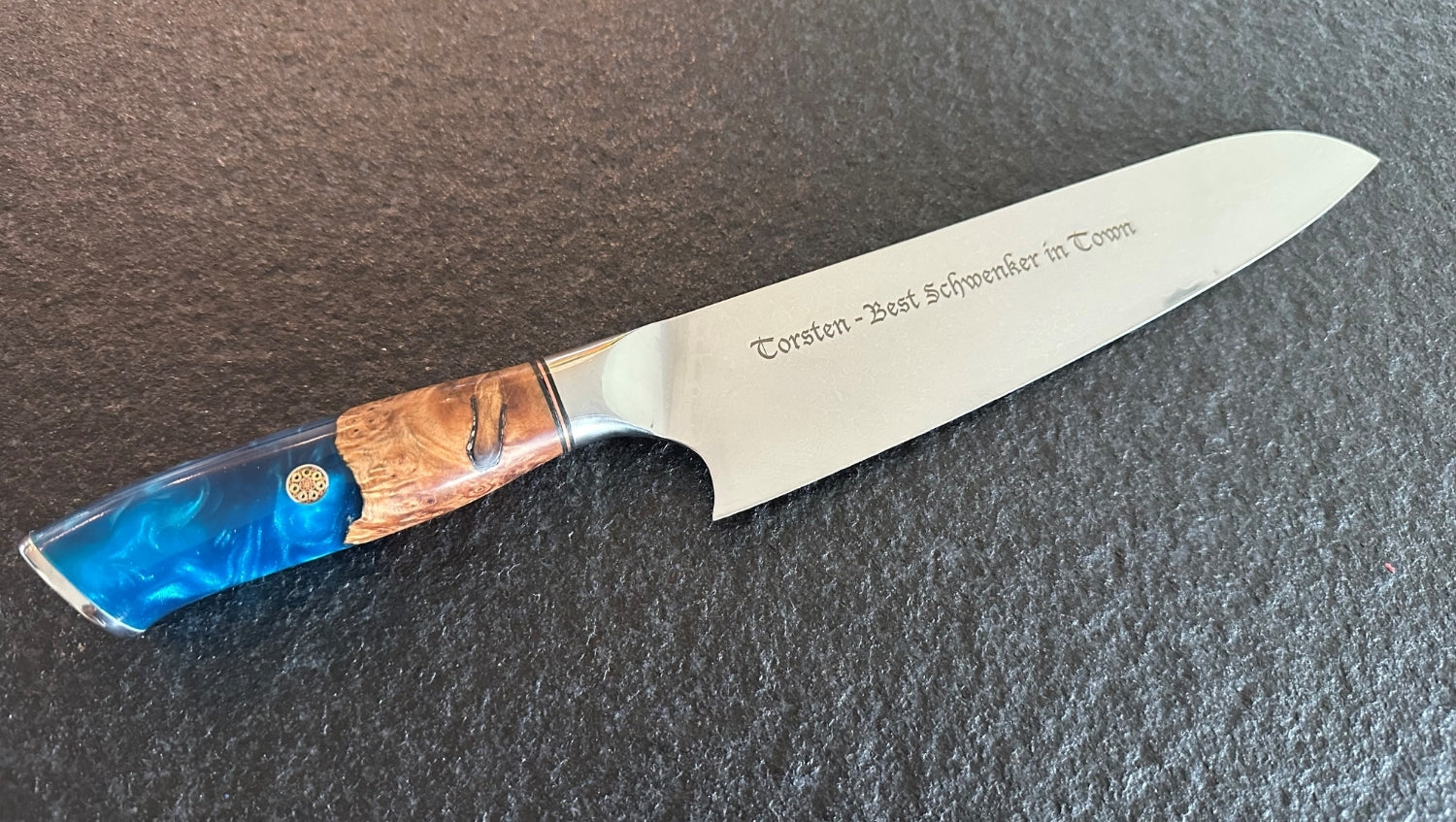 Ein weiteres Highlight: Jedes Messer wird mit einer individuellen Gravur auf der Klinge geliefert. Den gewünschten Text können Sie ganz einfach im Checkout unter „Kommentar“ angeben – ideal, um das Messer zu personalisieren oder es mit einer persönlichen Botschaft zu verschenken.