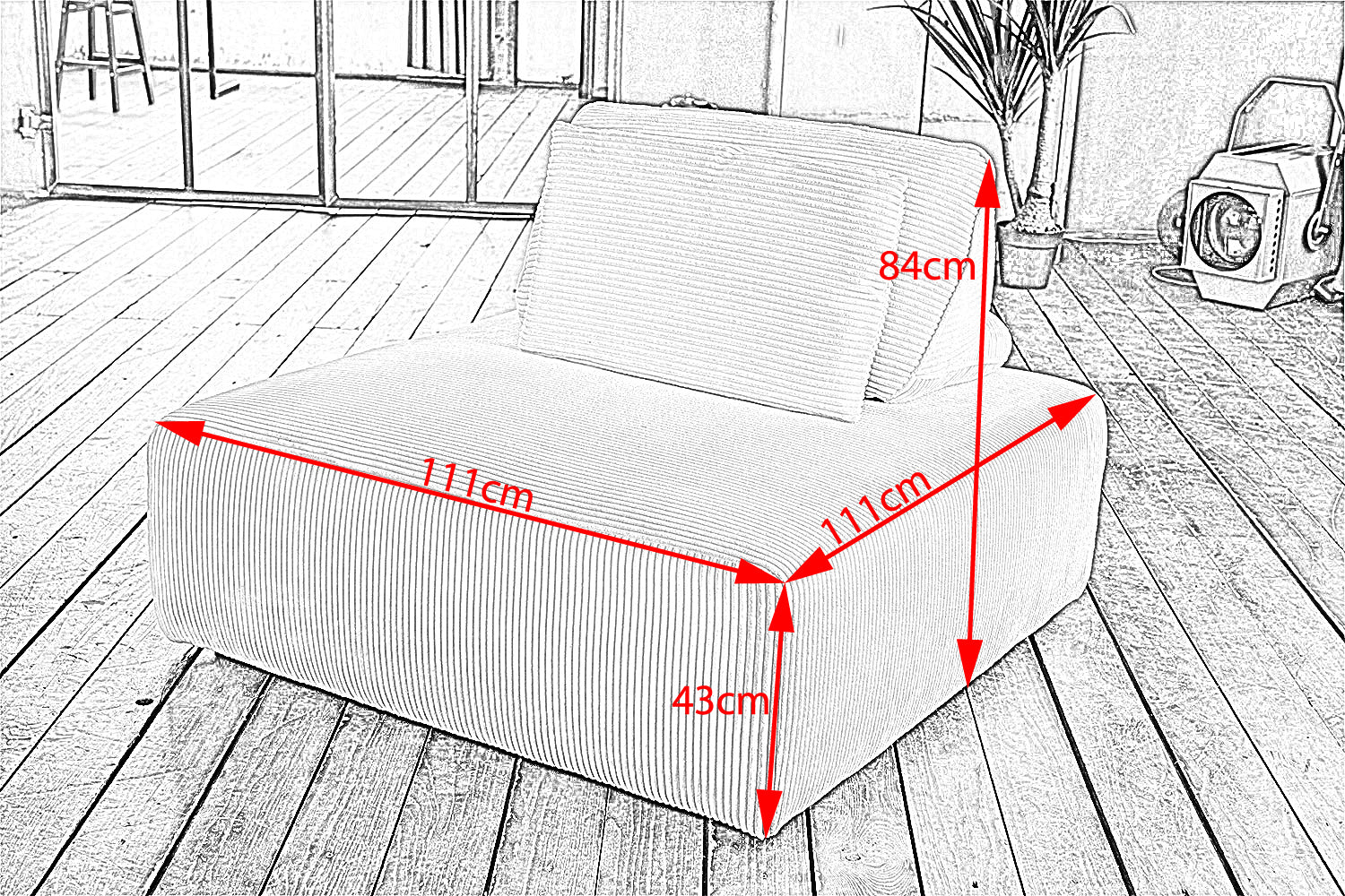 • Abnehmbarer und waschbarer Bezug aus angesagtem Cord-Stoff