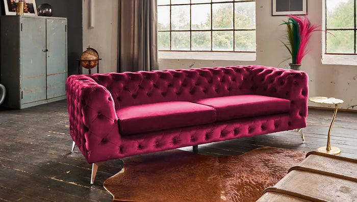 Sofort versandfertig, Lieferzeit: ca. 14 - 21 TageKAWOLA Sofa NARLA Chesterfield 3-Sitzer Velvet rot