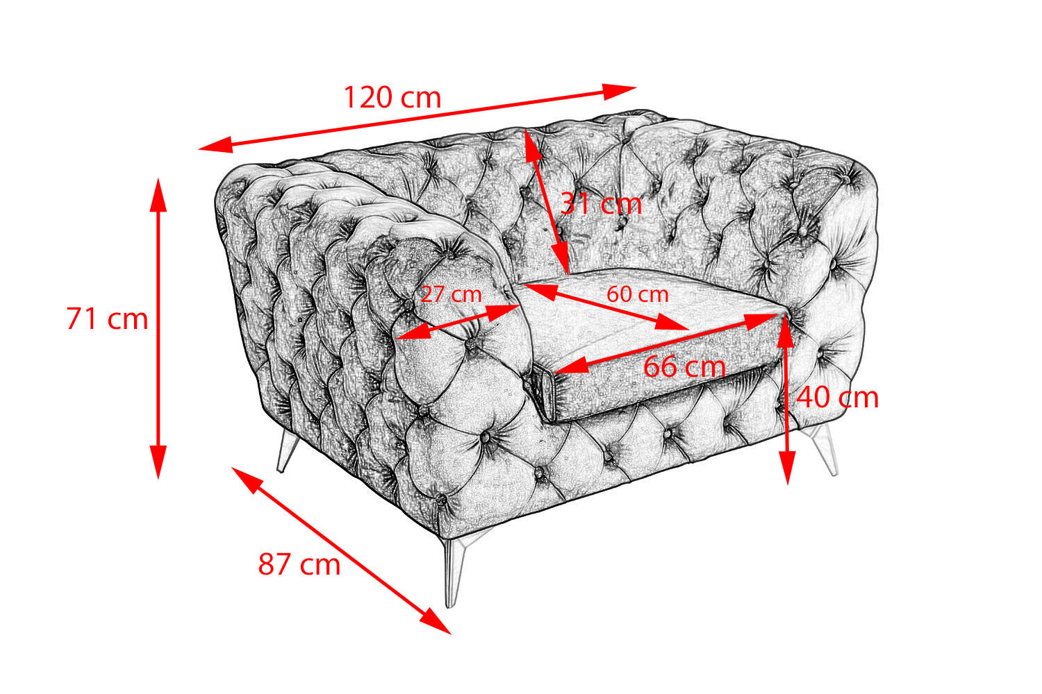 • Bequemer Sessel im klassischen Chesterfield-Stil