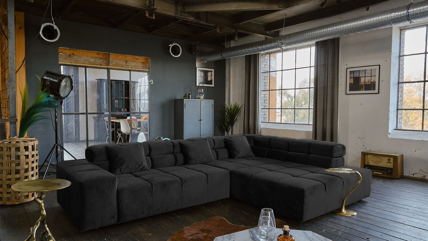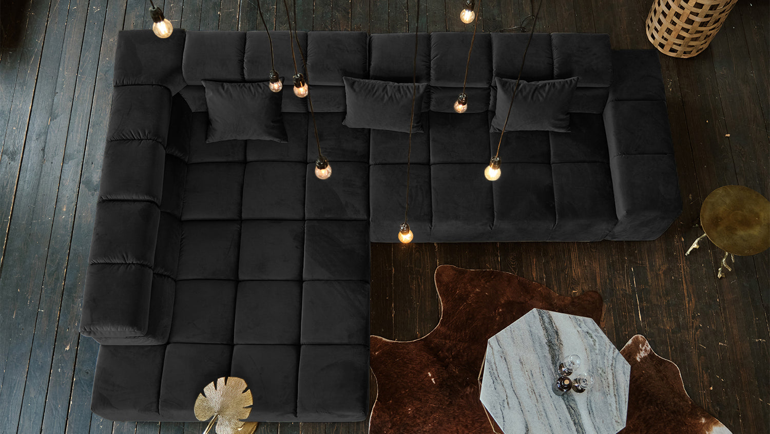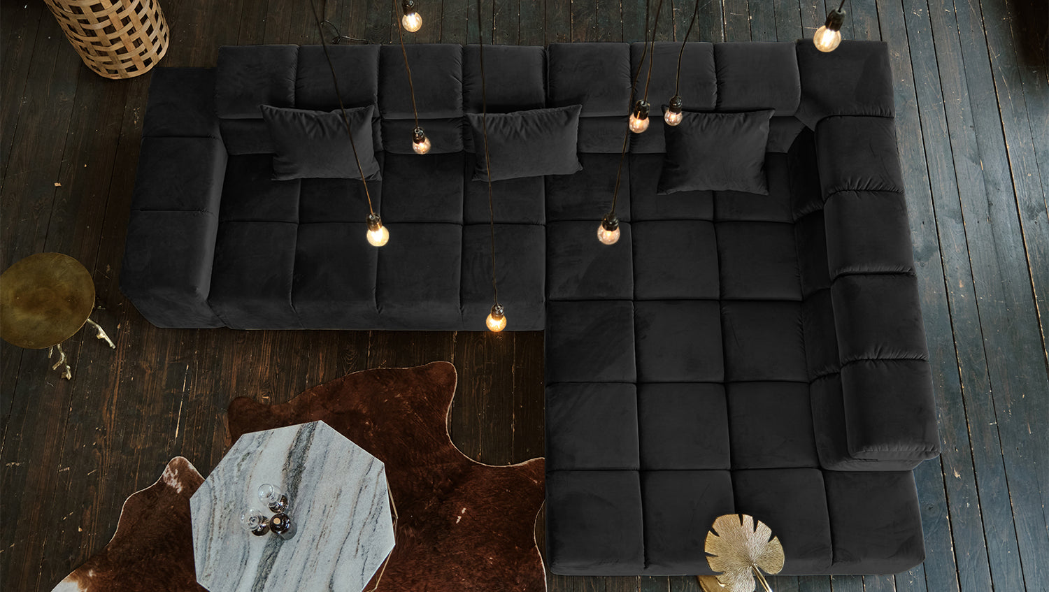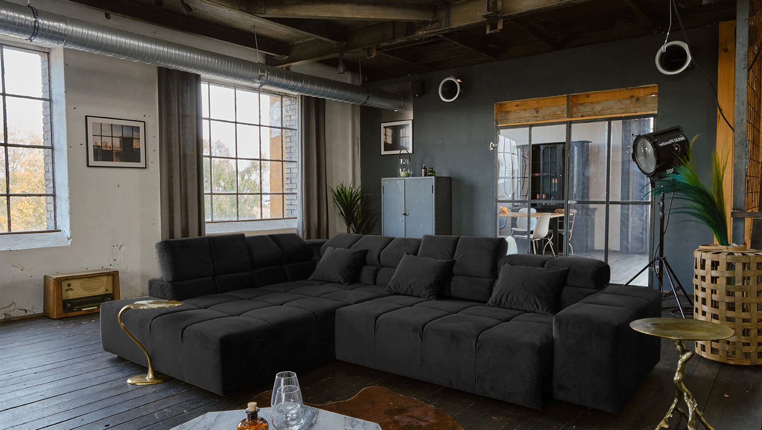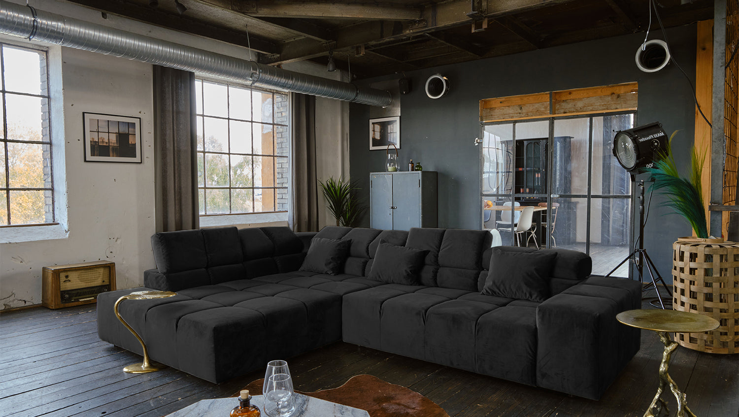 KAWOLA Sofa NEVADA Ecksofa Velvet schwarz