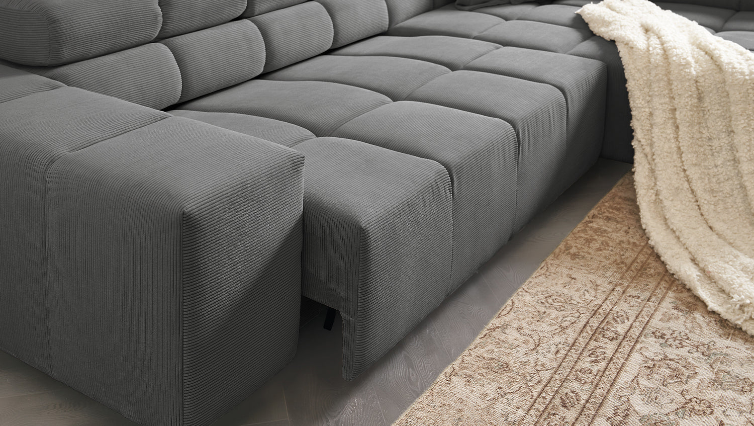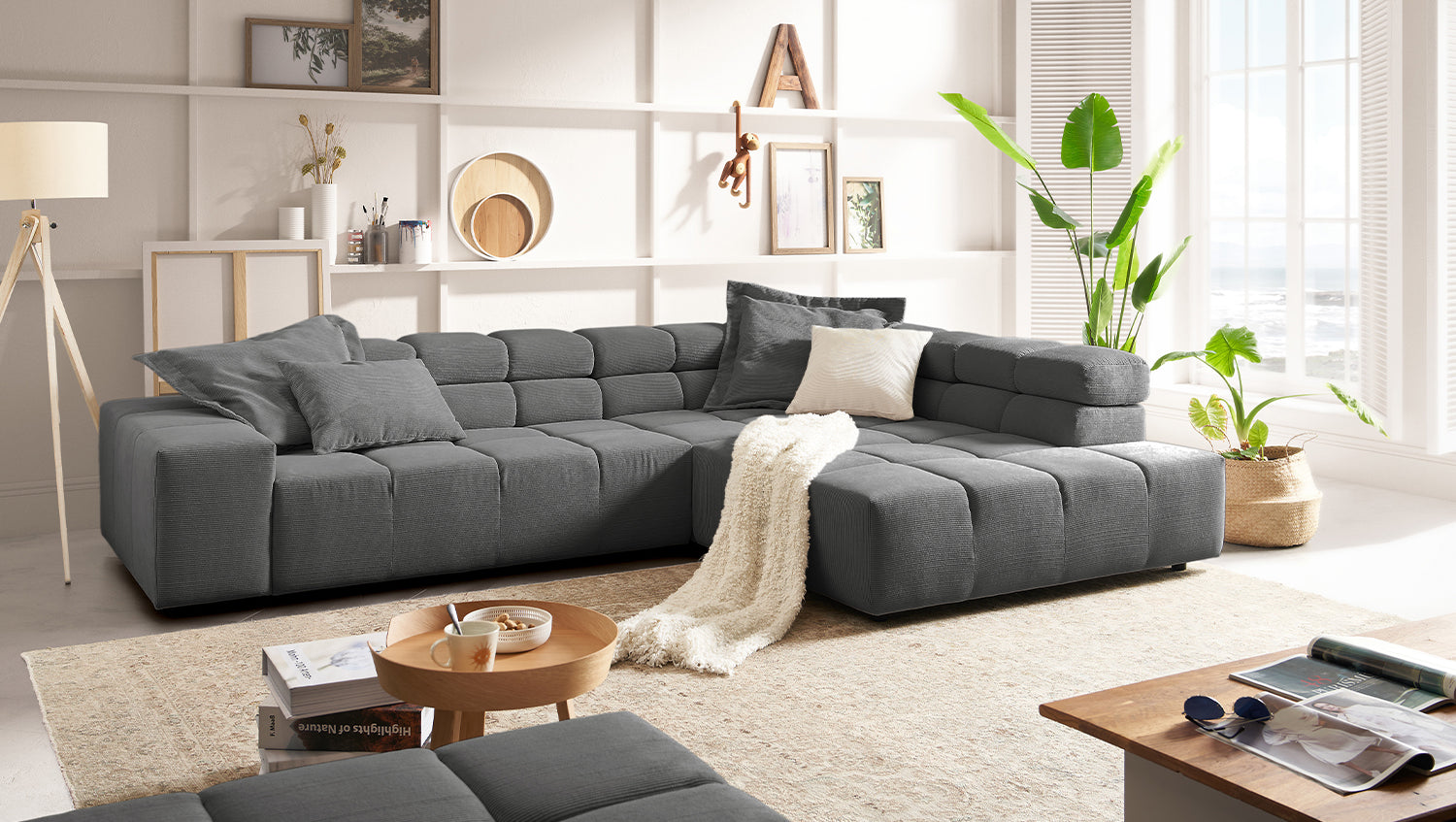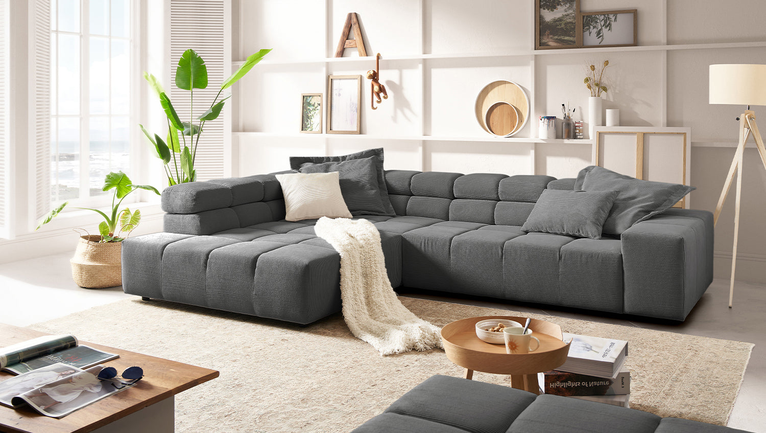 KAWOLA Sofa NEVADA Ecksofa Feincord anthrazit