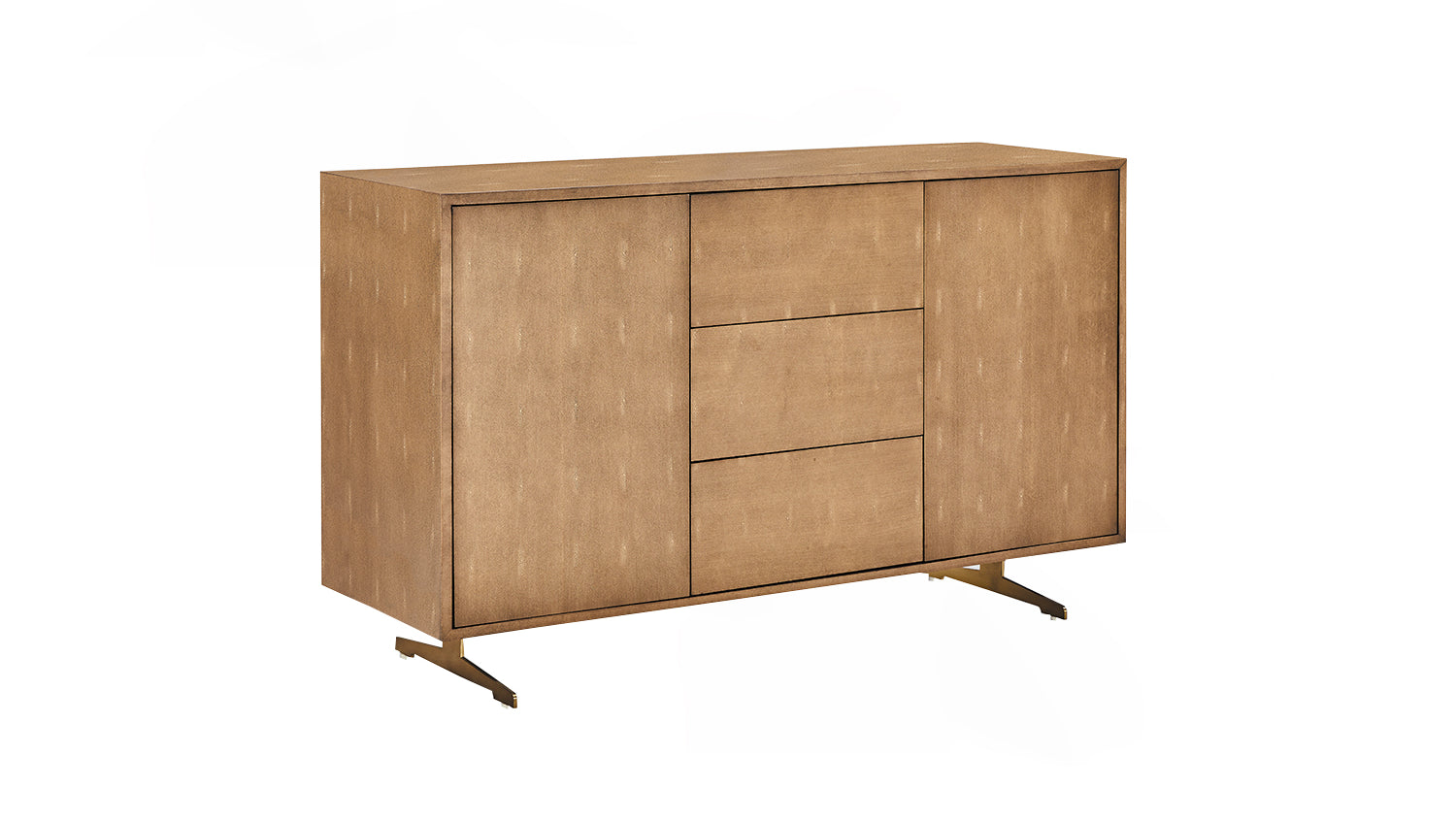 KAWOLA Sideboard GALA 2 Türen 3 Schubladen Kunstleder goldfarben Fuß Edelstahl gebürstet