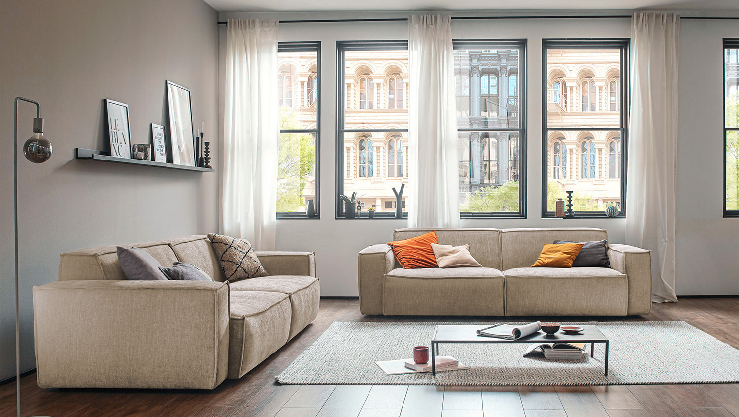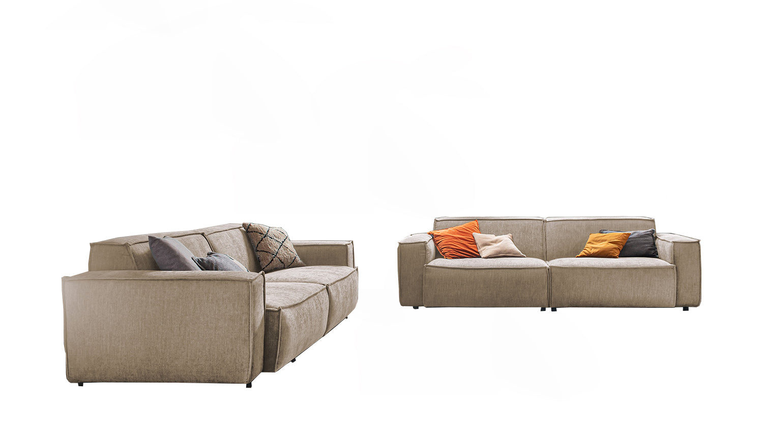 Die KAWOLA Sitzgruppe SAMU erscheint hier in der Kombination aus 2-Sitzer und 3-Sitzer. Die Sofas bestechen durch ihren hervorragenden Sitzkomfort, der durch den äußerst weichen und legeren Polsteraufbau zustande kommt und zum Verweilen und Entspannen einlädt. Die Polsterung passt sich der Körperform an; Sitzabdrücke sowie Wellenbildung der Bezüge sind warentypisch. Die moderne und urbane Form verleiht den Sofas ihr unverwechselbares Aussehen und bietet ausreichend Platz, um gemütliche Abende zu verbringen. Mit ihrem zeitlosen Design fügen sie sich nahtlos in jede Umgebung ein und machen auch frei im Raum stehend eine gute Figur. Wenn Sie Ihrem Wohnzimmer einen außergewöhnlichen Anstrich verleihen wollen, ist die Sitzgruppe SAMU definitiv das Richtige für Sie!