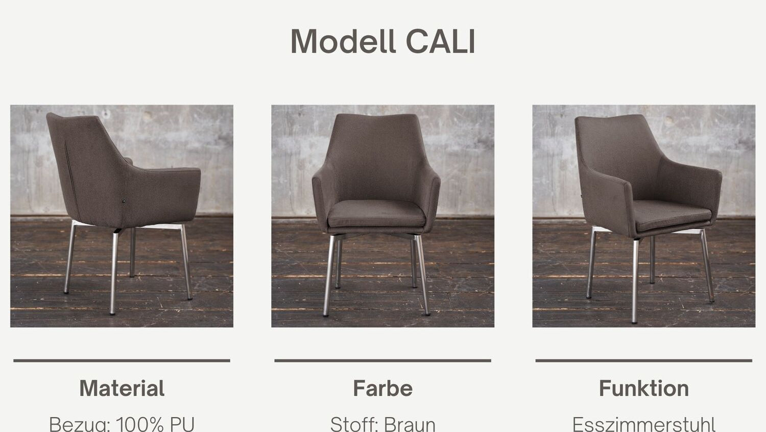 Der Stuhl Cali überzeugt durch sein schlichtes und elegantes Design. Der Esszimmerstuhl vereint das Klassische mit dem Modernen auf gekonnte Art und Weise.