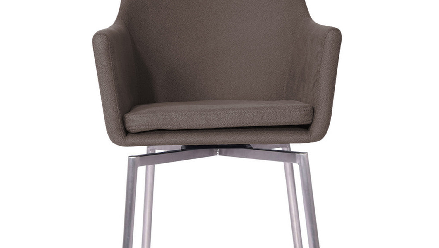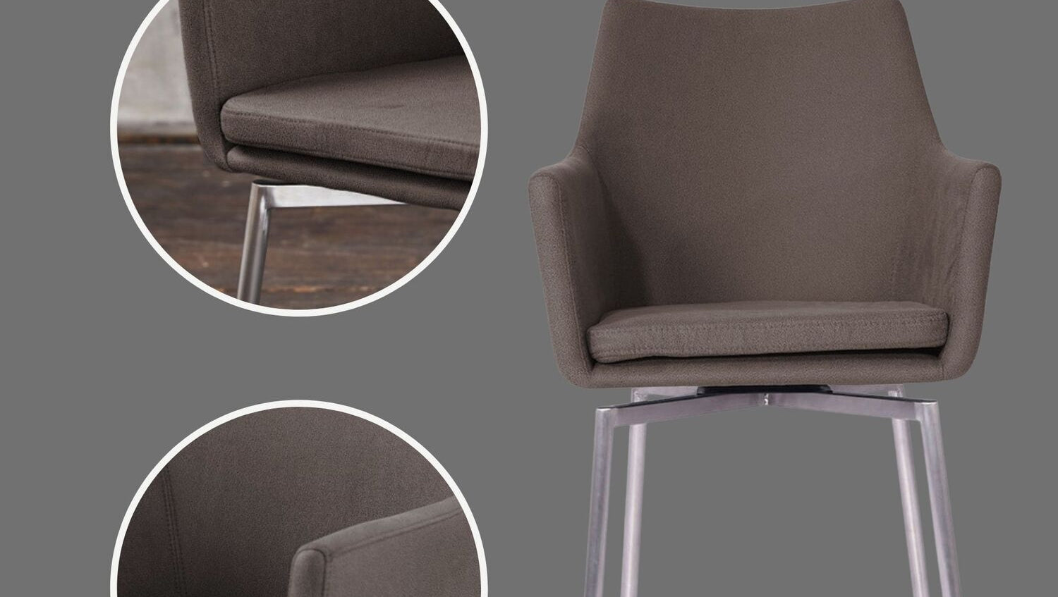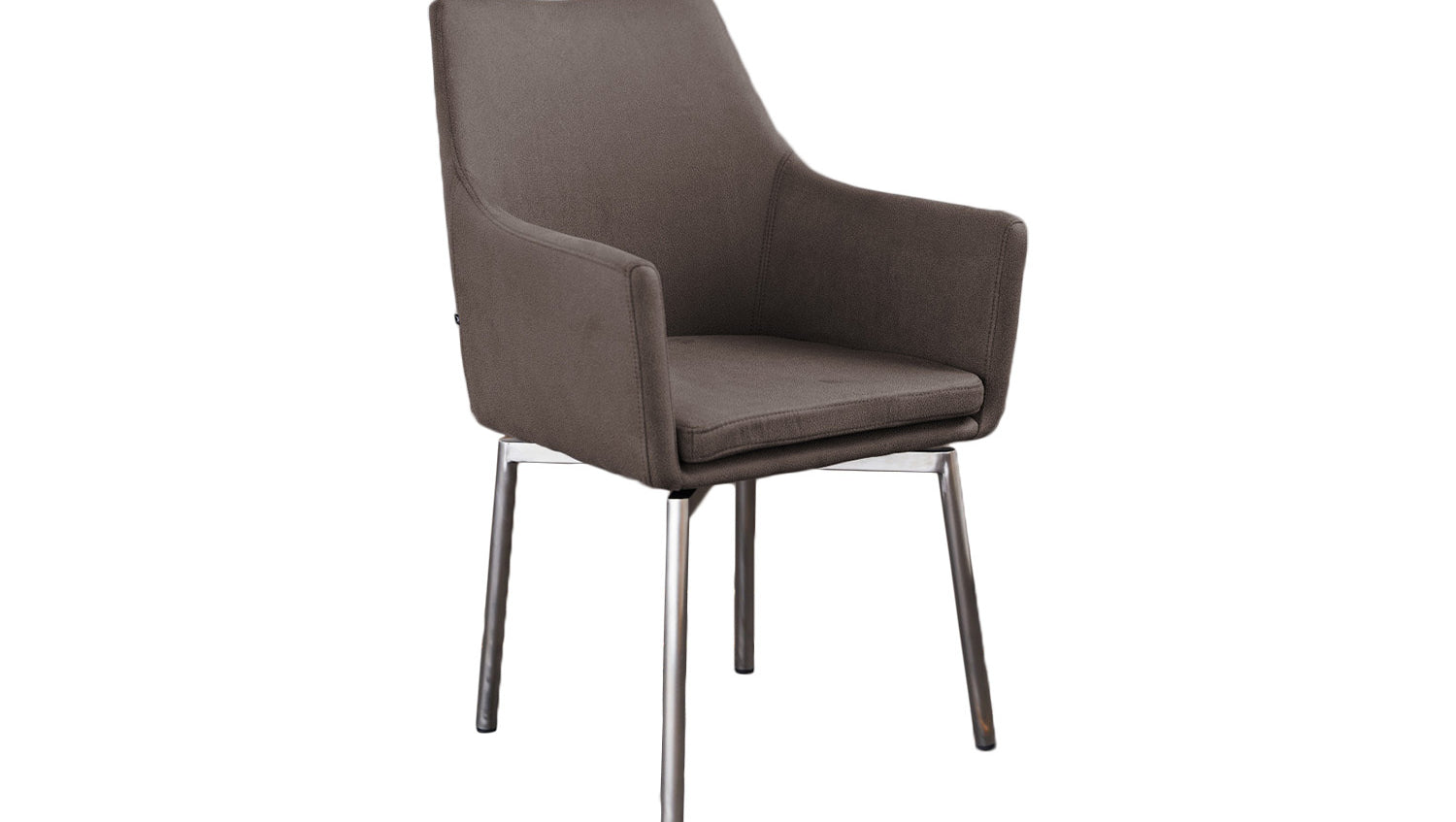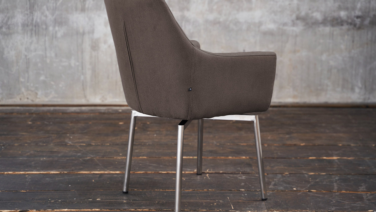 Das Gestell in Edelstahl harmonisiert hervorragend mit der Wahl des Bezuges und verleht dem Stuhl seinen modernen Charakter.