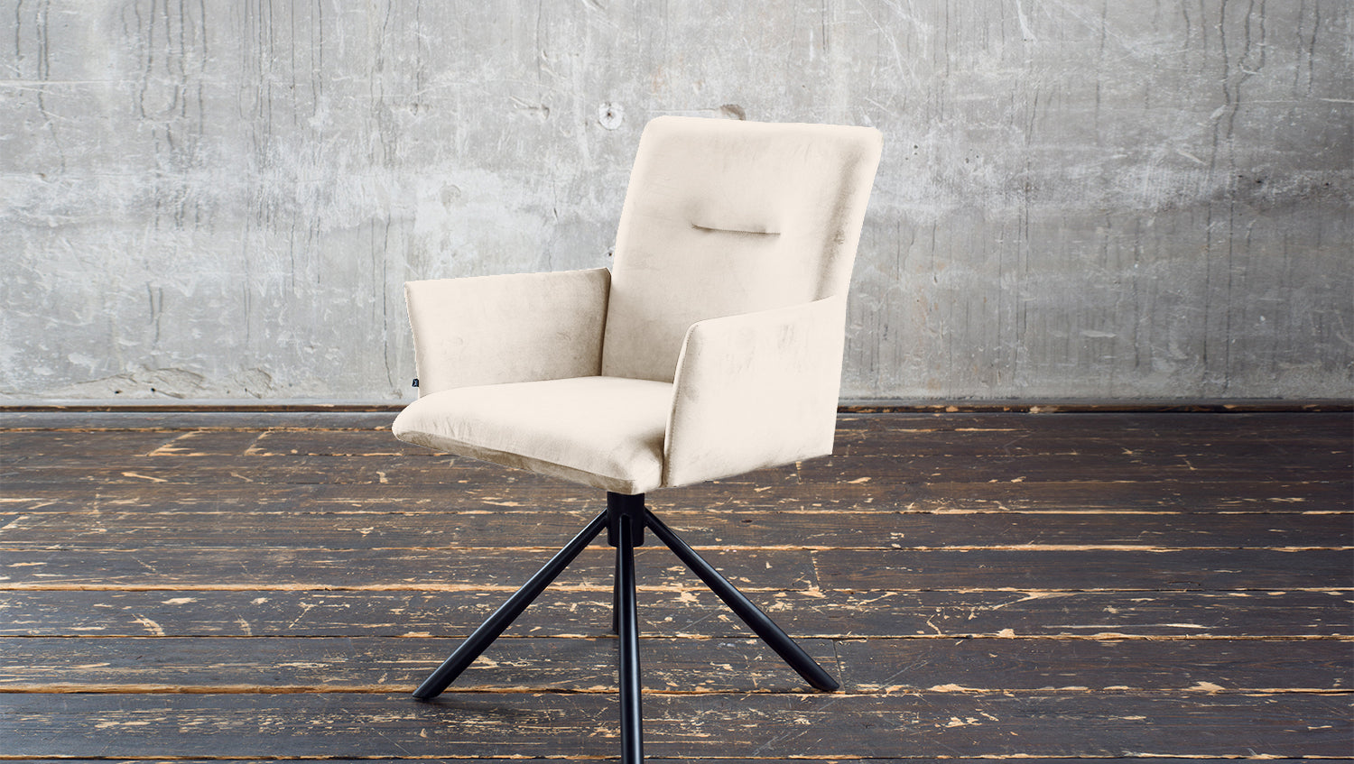 KAWOLA Esszimmerstuhl KYRA Drehstuhl Velvet cremeweiß