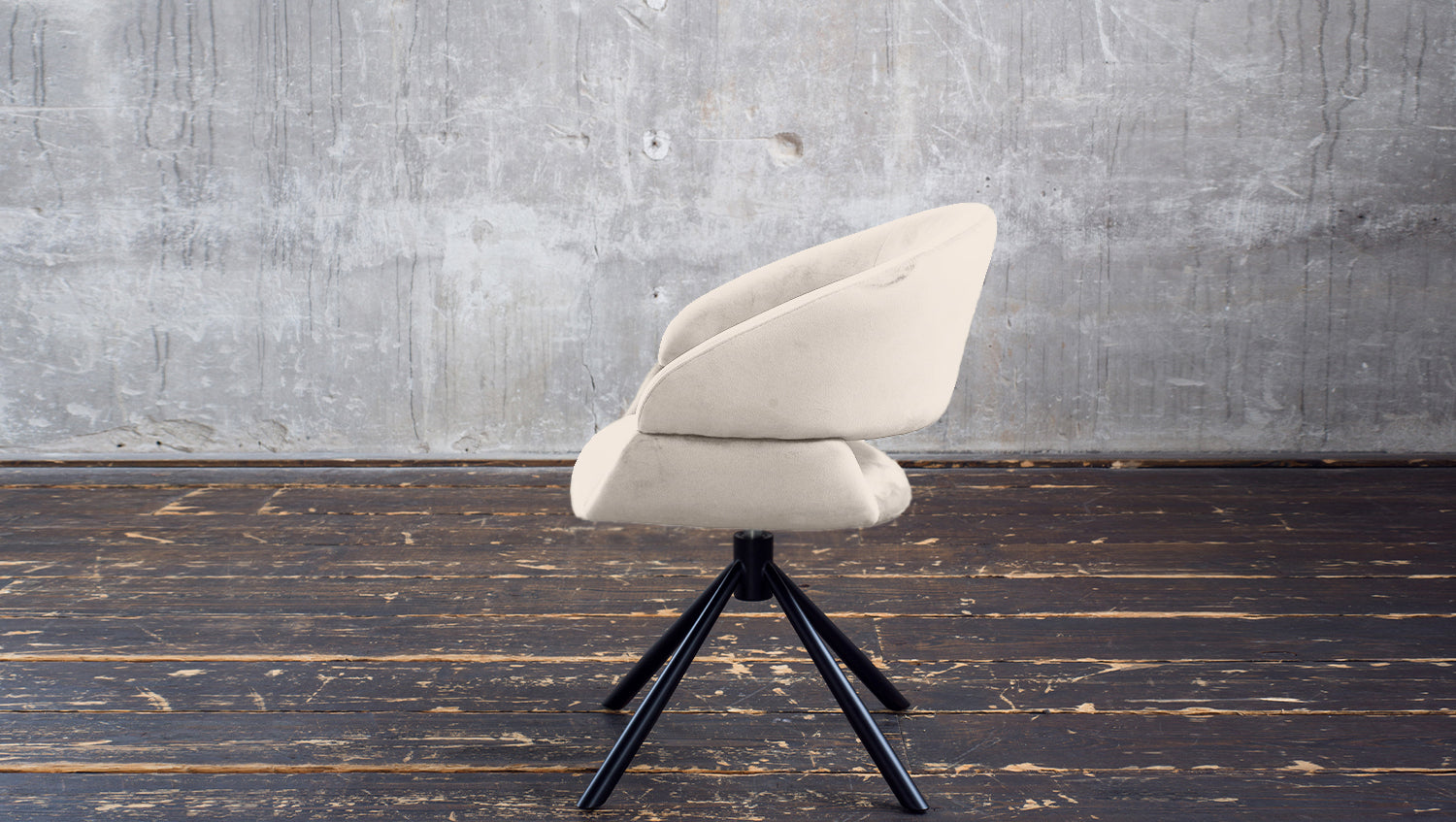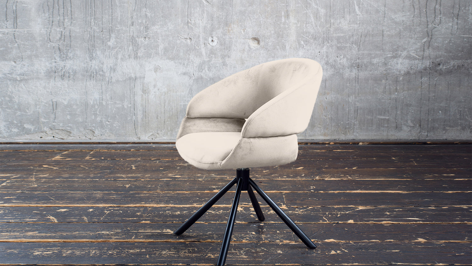 KAWOLA Esszimmerstuhl LARA Drehstuhl Velvet cremeweiß