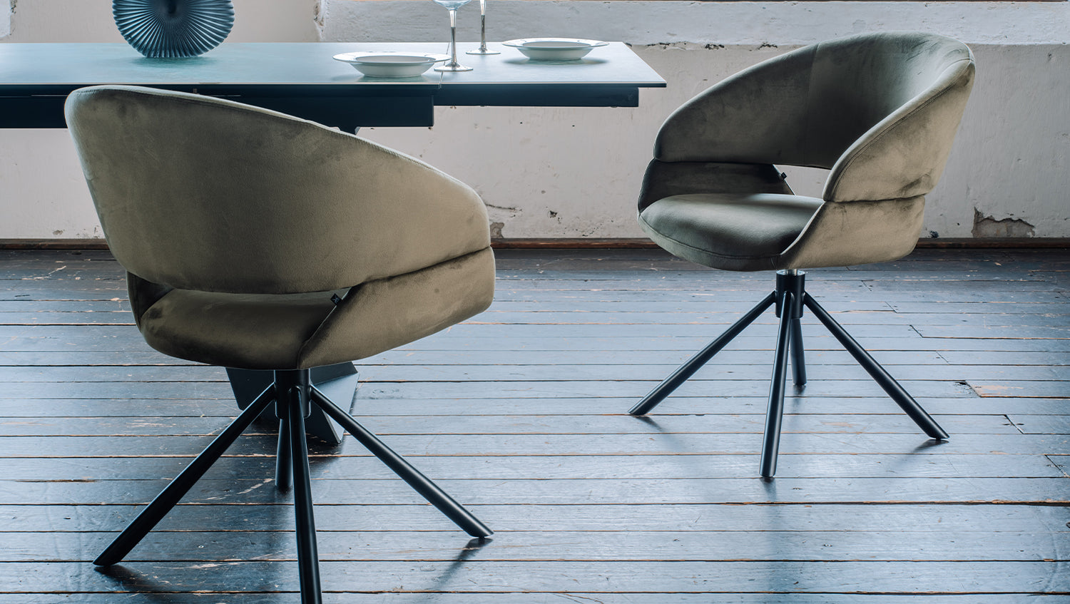 Der KAWOLA Esszimmerstuhl LARA bietet luxuriösen Sitzkomfort in einem modernen Design und ist die perfekte Ergänzung für stilvolle Essbereiche. Mit einer Breite von 61 cm, einer Tiefe von 62 cm und einer Höhe von 82 cm passt der samtbezogene Stuhl ideal in jeden Raum und verleiht ihm ein elegantes Ambiente. Die Sitzhöhe beträgt 48 cm, die Sitztiefe 49 cm und die Sitzbreite 44 cm – optimal für gemütliches Sitzen. Das 360° drehbare Gestell mit praktischer Auto-Return-Funktion bringt den Stuhl automatisch in die Ausgangsposition zurück und ermöglicht so flexible Beweglichkeit am Tisch. Das pulverbeschichtete Drehgestell aus schwarzem Eisen sorgt für Stabilität und verleiht dem Stuhl eine moderne Note. Die bequemen Armlehnen und der hochwertige Velvet-Bezug machen diesen Stuhl zum perfekten Mix aus Komfort und Stil. Der LARA Esszimmerstuhl ist die ideale Wahl für alle, die Funktionalität und edles Design kombinieren möchten.