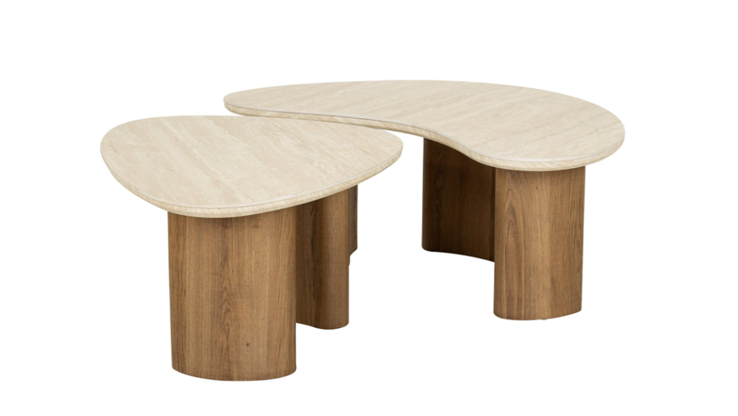 Das elegante, organisch geformte Couchtisch-Set PRETO von KAWOLA kombiniert einen stabilen Holzrahmen mit einer luxuriösen Keramikplatte in Travertinoptik, was ihm einen raffinierten Look verleiht - perfekt für moderne und klassische Interieurs. Diese Tische sind vielseitig und funktional, ein echtes Must-have! Das Set besteht aus wei Tischen. Der größere Tisch hat eine Fläche von 88 x 44 cm, der kleinere hat eine Fläche von 65 x 34 cm - bei einer Höhe von je 36 cm. Ob modern, rustikal oder klassisch – das PRETO Couchtisch-Set passt sich dank seines zeitlosen Looks mühelos jedem Einrichtungsstil an. Ideal als stilvoller Mittelpunkt im Wohnzimmer und ein echtes Highlight für Liebhaber hochwertiger Möbel.