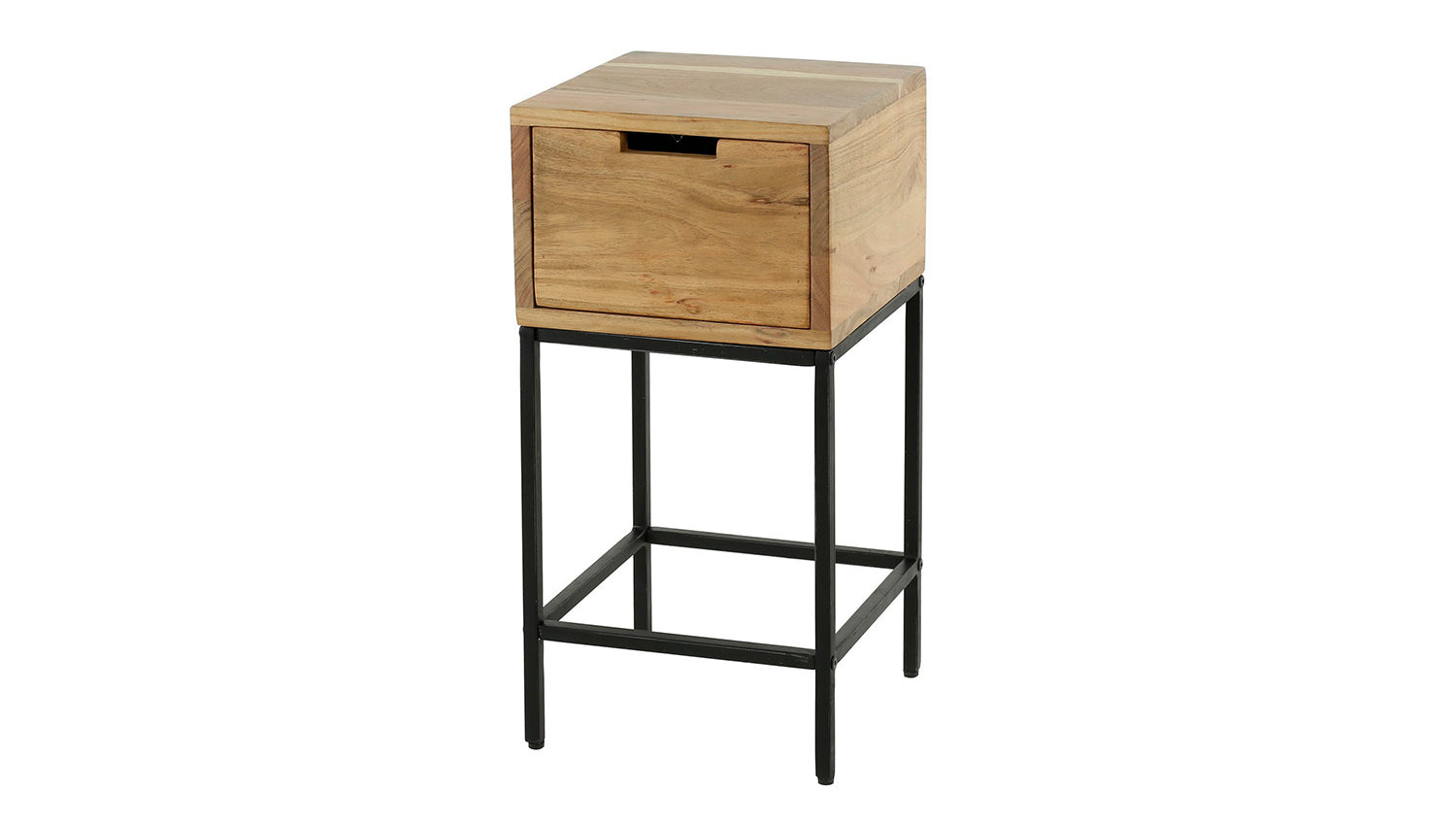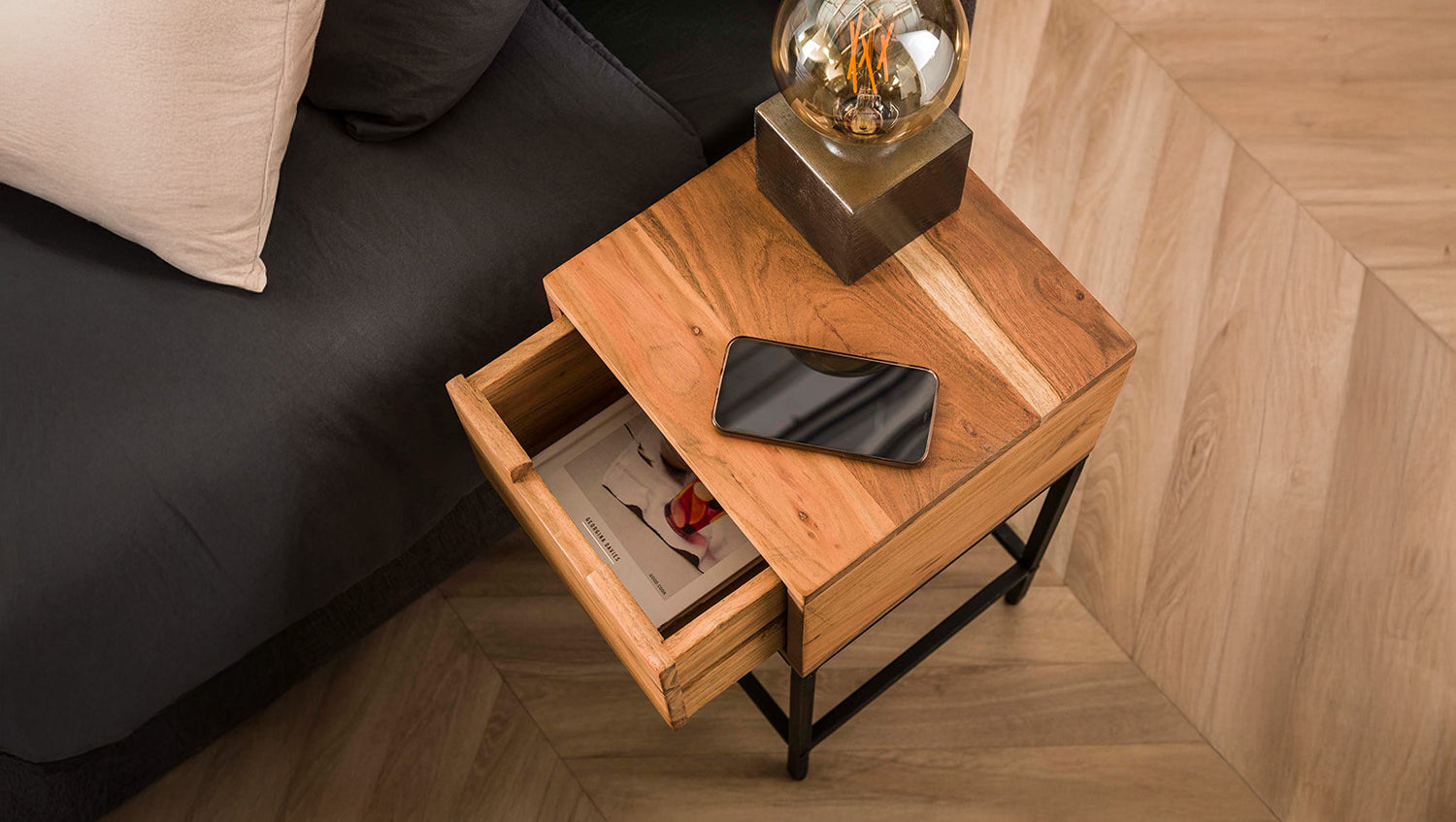 KAWOLA Nachttisch FATY Beistelltisch Akazie massiv natur 1 Schublade