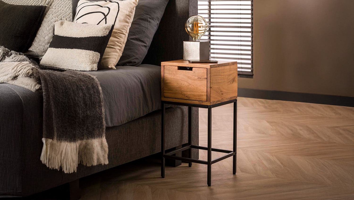 Der Nachttisch FATY von KAWOLA vereint modernes Design mit natürlicher Eleganz. Gefertigt aus hochwertigem Akazienholz mit matt transparenter Lackierung bringt er Wärme und Stil in jedes Schlafzimmer. Der robuste Metallrahmen sorgt für Stabilität und verleiht dem Möbelstück einen industriellen Touch. Mit seinen kompakten Maßen von 30 x 30 cm und einer Höhe von 60 cm ist der quadratische Nachttisch die ideale Lösung für kleinere Räume. Eine praktische Schublade bietet Platz für persönliche Dinge, die Sie griffbereit am Bett aufbewahren möchten. Der Nachttisch FATY ist nicht nur funktional, sondern auch ein echter Blickfang – perfekt für moderne, minimalistische oder rustikale Einrichtungen. Setzen Sie stilvolle Akzente mit diesem platzsparenden Nachttisch aus Akazienholz!