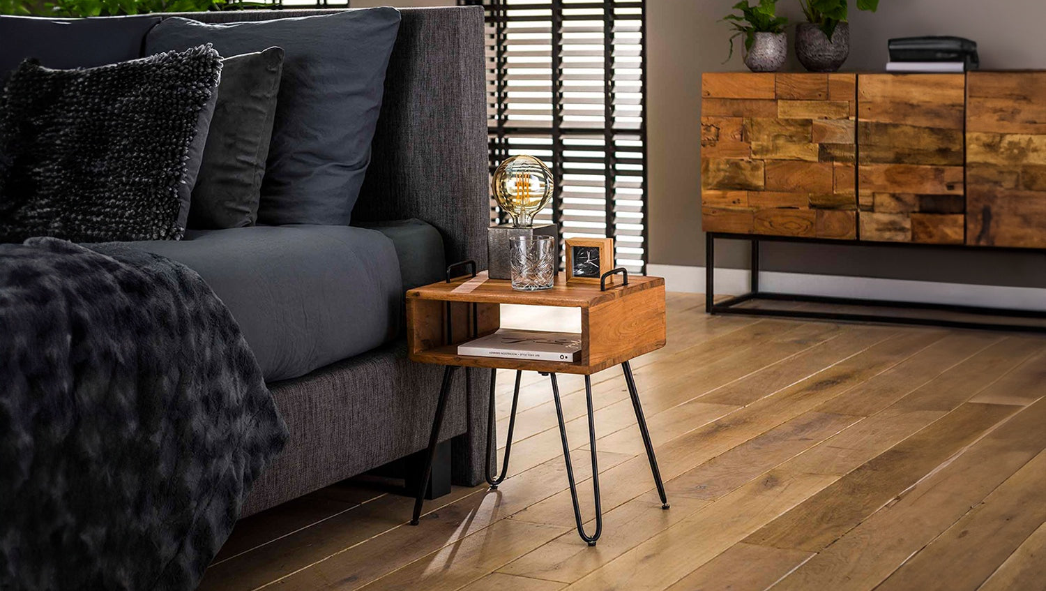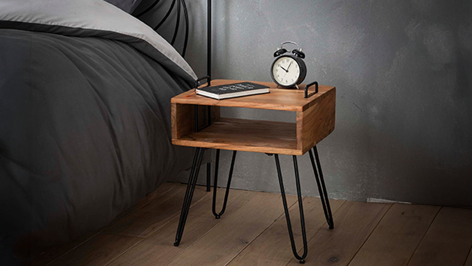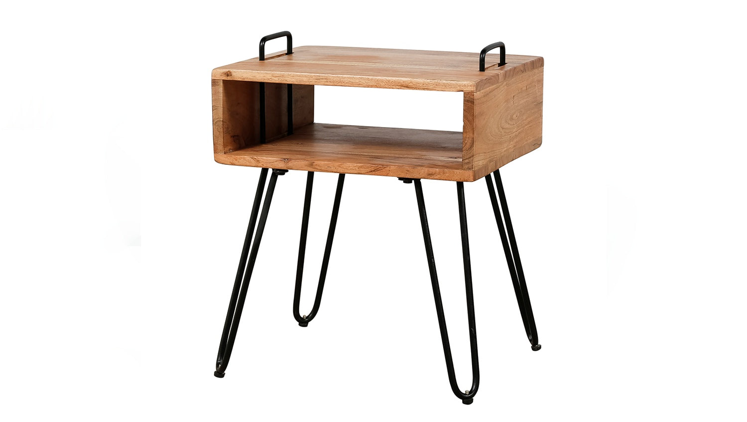 Der KAWOLA Nachttisch QARO überzeugt mit modernem Design und praktischer Funktion. Gefertigt aus hochwertigem Akazienholz mit matt transparentem Lack, bringt er natürliche Eleganz in Ihr Schlafzimmer oder Wohnzimmer. Das offene Fach bietet Stauraum für Bücher, Zeitschriften oder Alltagsgegenstände. Der markante Stahlrahmen verleiht dem Tisch Stabilität und führt bis zur Oberseite, wo zwei integrierte Griffe das Anheben und flexible Platzieren erleichtern. Mit Maßen von 40 x 34 x 48 cm ist QARO vielseitig einsetzbar – als stilvoller Nachttisch oder funktionaler Beistelltisch. Die Kombination aus robustem Holz und Metall macht den QARO Nachttisch zu einem zeitlosen Blickfang in jedem Raum. Ideal für alle, die modernes Design mit praktischer Handhabung verbinden möchten.