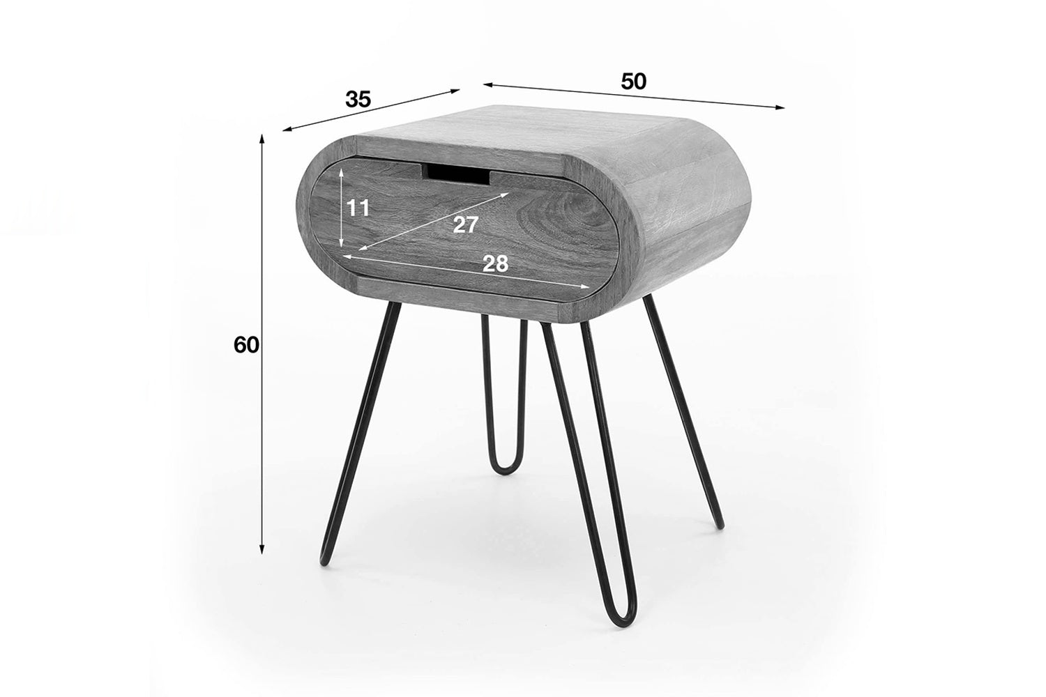 Der KAWOLA Nachttisch BAEL überzeugt mit trendigem Design und hochwertiger Verarbeitung. Gefertigt aus nachhaltigem Mangoholz mit sandfarbenem Finish und kombiniert mit einem schwarzen, pulverbeschichteten Metallrahmen, bringt er natürlichen Charme und moderne Eleganz in Ihr Schlafzimmer. Die runde Form sorgt für einen weichen, stilvollen Look und macht den Tisch zu einem echten Hingucker. Eine praktische Schublade bietet Stauraum für persönliche Dinge wie Bücher, Brillen oder Ladegeräte. Mit seinen Maßen von 50 x 35 x 60 cm ist BAEL vielseitig einsetzbar – als Nachttisch, Beistelltisch oder stilvolle Ablage. Der Nachttisch BAEL verbindet Funktionalität mit außergewöhnlichem Design und ist ideal für moderne Wohnkonzepte.