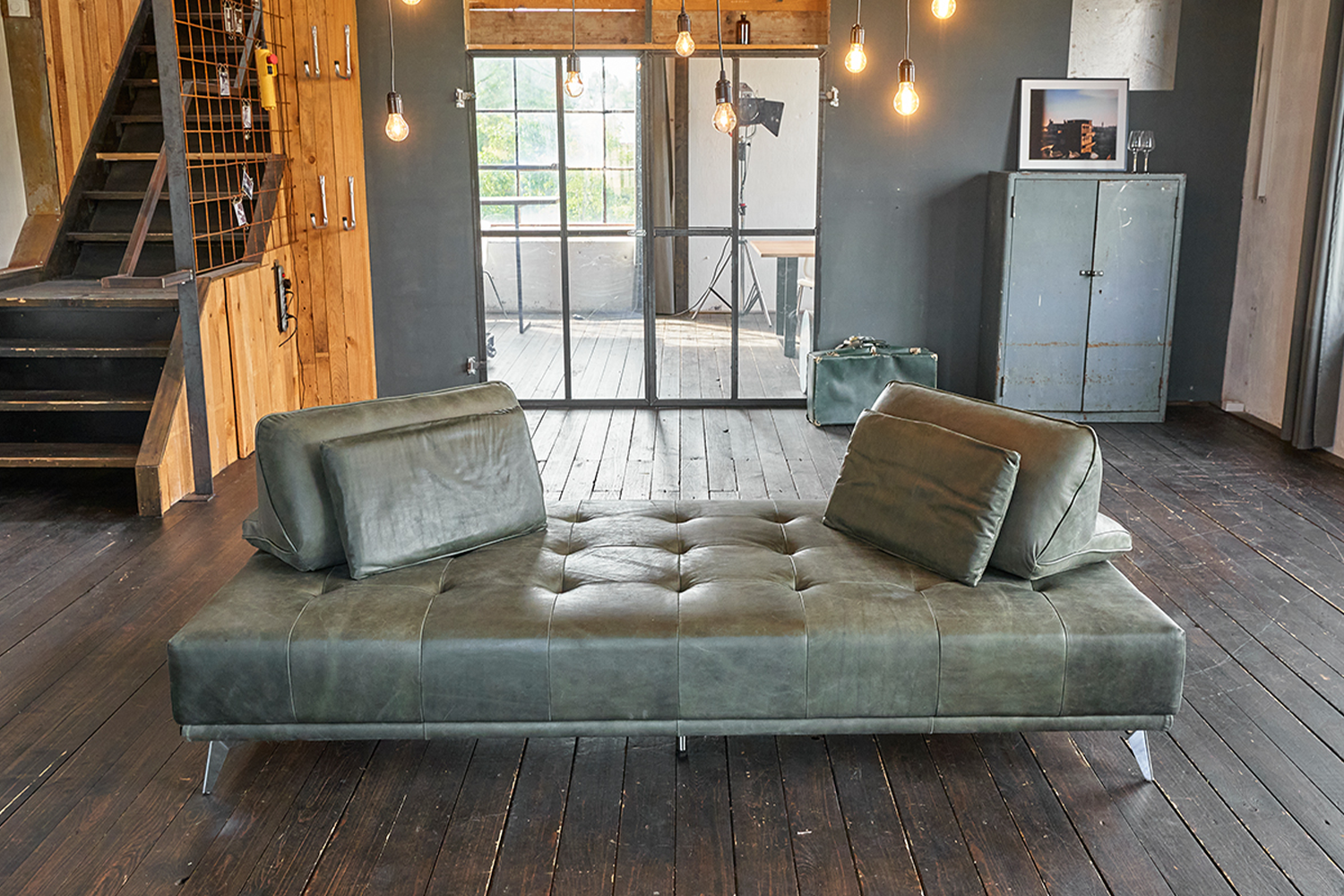 Produktinformationen "B-Ware KAWOLA Sofa WIOLO Schlafsofa Daybed Leder moosgrün"