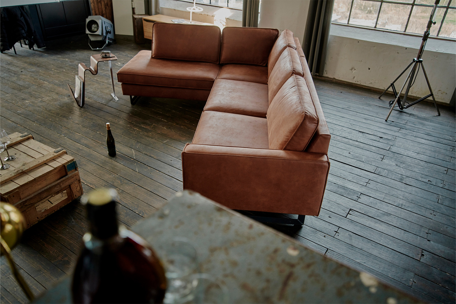 Das Sofa VILNIUS von KAWOLA bietet alle Stärken eines klassischen Ledersofas und noch einiges darüber hinaus. Extreme Robustheit ist durch das massive Holzgestell ebenso gegeben, genauso wie eine komfortable und legere Polsterung für ein weiches Sitzvergnügen. Trotz seiner großflächigen Maße lässt sich das Ecksofa in allen Räumlichkeiten flexibel positionieren und stellt damit jederzeit ein optisches Highlight dar. Die Metallfüße im Industrie-Look bilden dazu einen schönen Kontrast zum hauptsächlichen Möbelstück. Alles in allem wird das KAWOLA Sofa VILNIUS zu jeder Gelegenheit für eine wunderbar wohlige Atmosphäre sorgen.