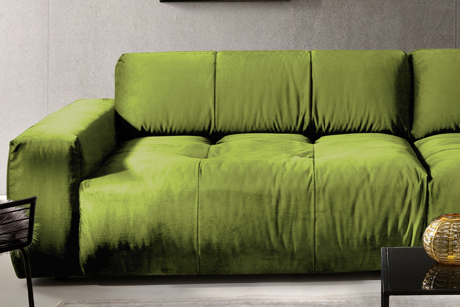 Sofa PALACE überzeugt mit zeitloser Eleganz, modernem Design und besonders hohem Komfort. Der elegante Velvet-Bezug umspannt die gemütliche Liegefläche, deren legere Polsterung zum ausgiebigen Entspannen einlädt und Ihnen pure Erholung schenkt. Das besondere Extra: Sofa PALACE lässt sich im Handumdrehen vom Big Sofa zum klassischen Sitzmöbel verwandeln. Dank Sitztiefenverstellung, welche durch die Verstellung der Rückenlehne erfolgt, lässt sich die Sitztiefe von 83 cm auf 59 cm verkleinern. So können Sie frei entscheiden, ob Sie eine aufrechtere Sitzposition bevorzugen oder lieber Platz zum Ausstrecken bevorzugen.