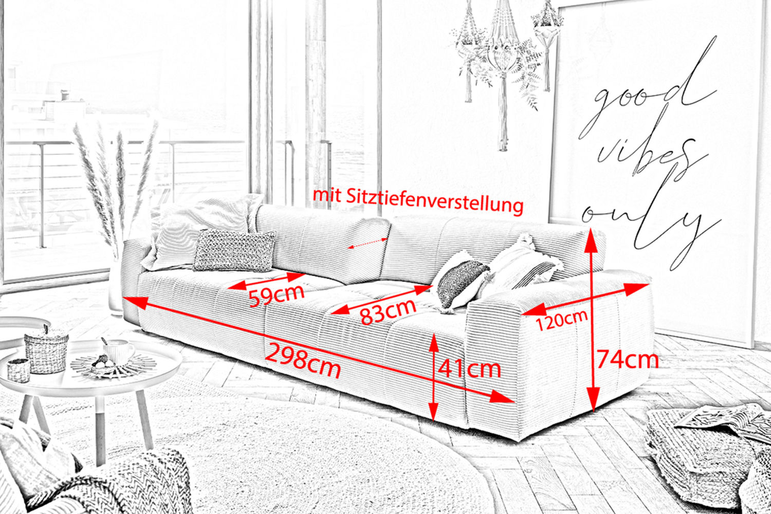 - Sitztiefe: 83 cm