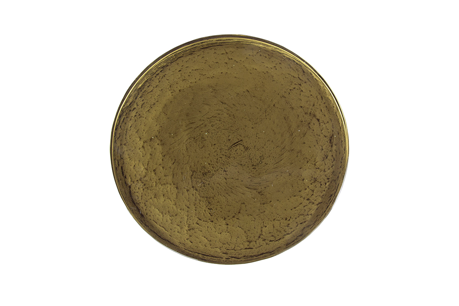 Ergänzende Details:Edles tropfenförmiges Metallgestell in Antikgold Hochwertige Glasplatte mit handwerklichem Charakter Unregelmäßige Oberflächenstruktur macht jedes Stück besonders Kompaktes Design ideal für flexible Wohnideen