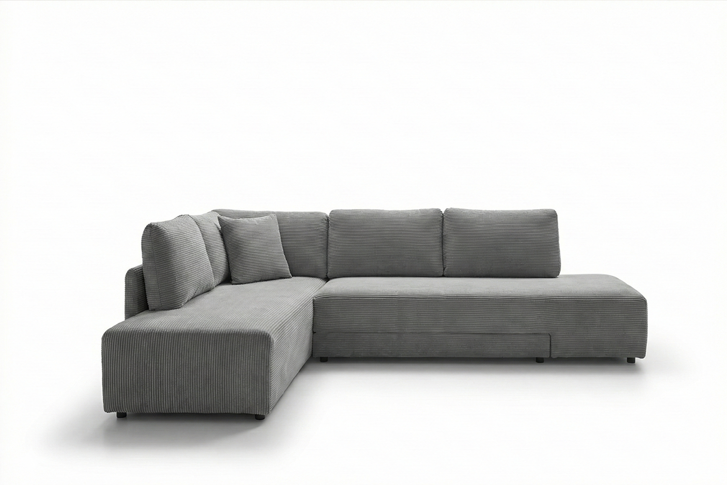 Die großzügige Ecklösung bietet viel Platz für entspannte Abende, geselliges Beisammensein oder ruhige Momente. Mit wenigen Handgriffen lässt sich das Sofa in eine komfortable Liegefläche verwandeln. Die durchgehende Polsterung sorgt dabei für ein gleichmäßiges Liegegefühl und macht SADIRA zu einer idealen Lösung für Gäste oder den regelmäßigen Gebrauch als Schlafsofa. Der Cord-Bezug unterstreicht den wohnlichen Charakter zusätzlich und vermittelt Wärme und Behaglichkeit.