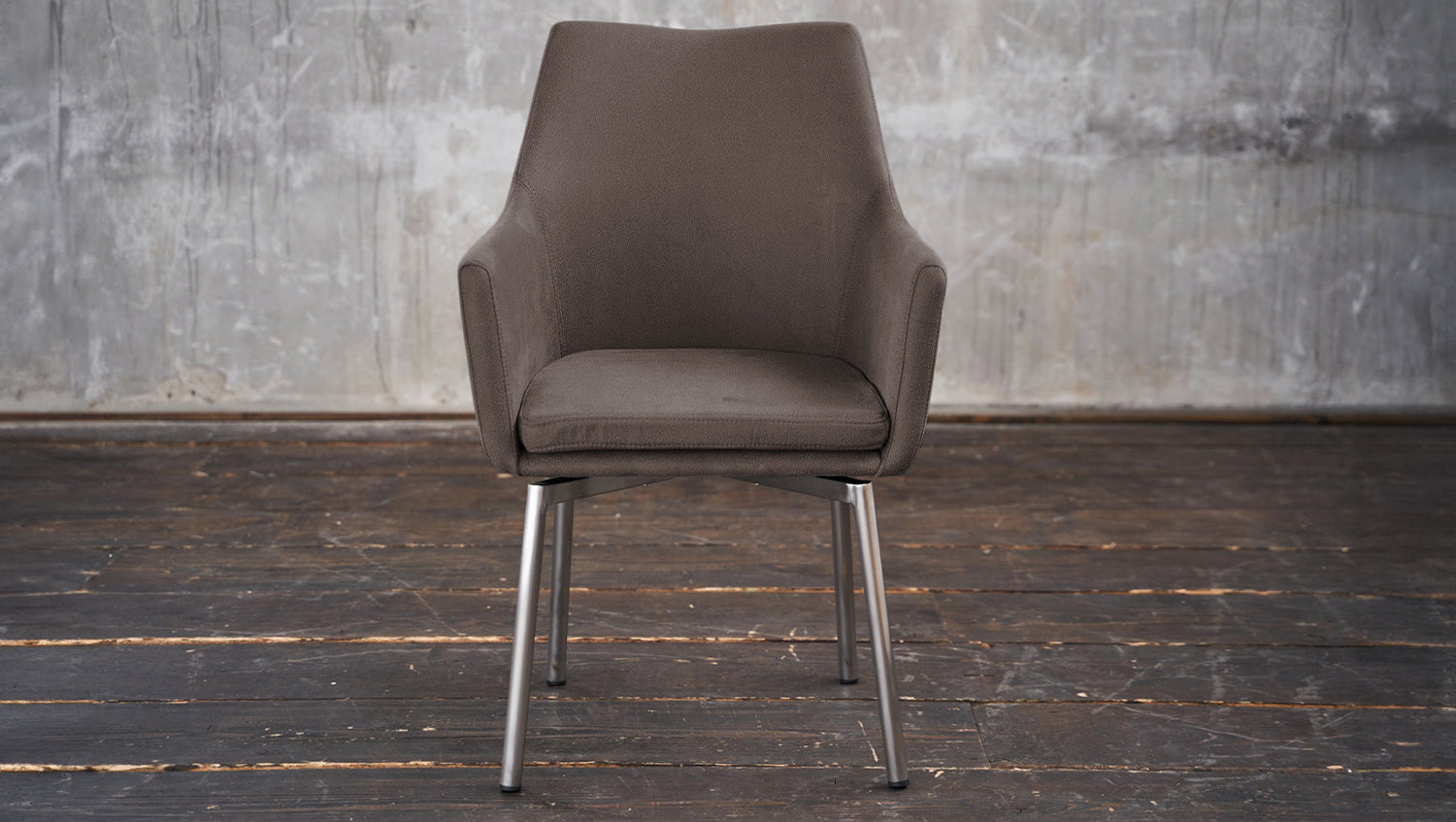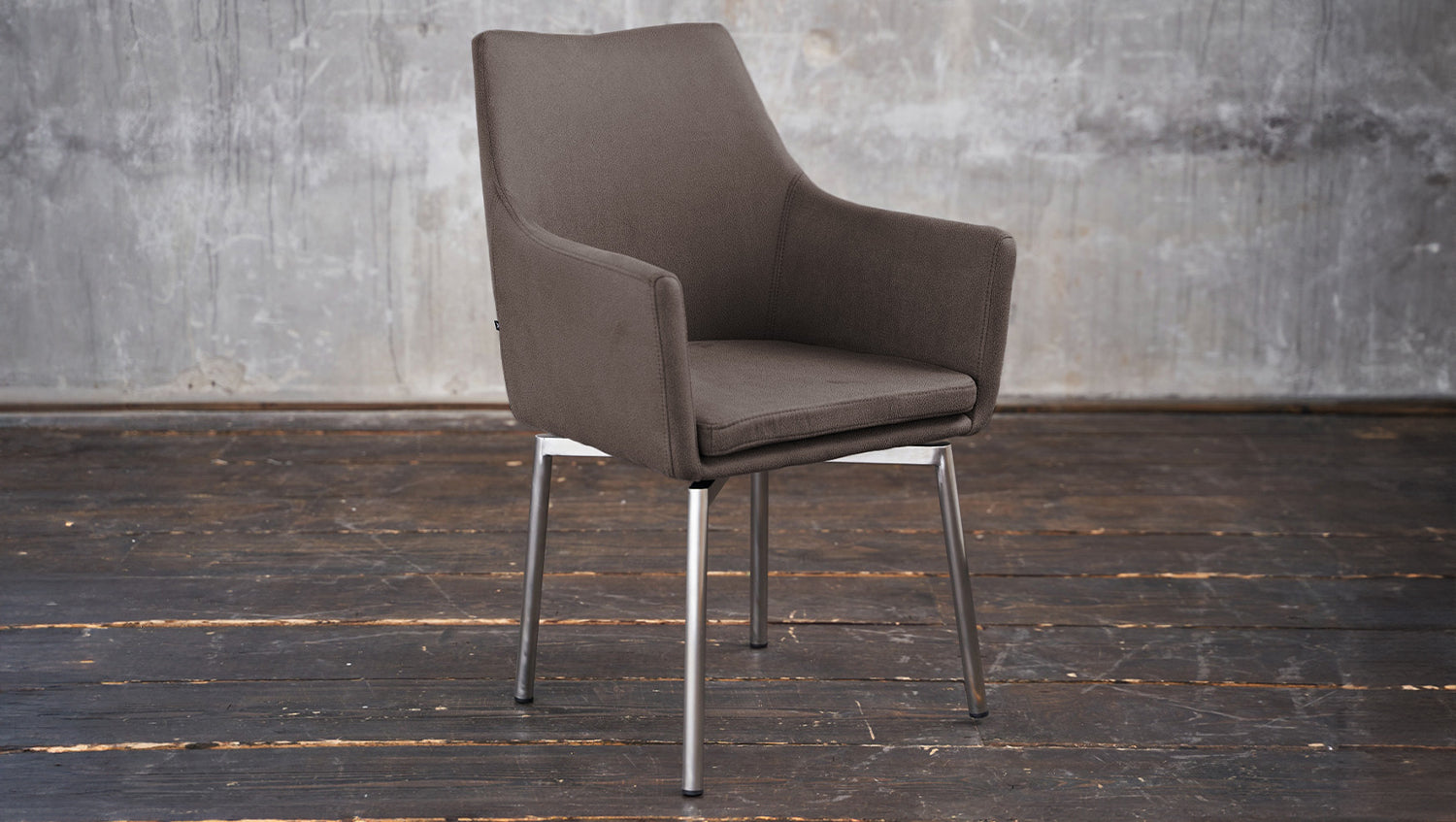 Esta silla es 2a oportunidad de una devolución de un cliente, que tiene ciertos defectos de menor importancia y por lo tanto es ofrecido por nosotros a un precio reducido. Los posibles defectos son: Arañazos en el armazón, marcas de presión, ligera suciedad y desviaciones de color en la tapicería, así como desgarros en la tela de los bajos. Por favor, eche un vistazo a las fotos de defectos directamente después de la foto principal. Sólo sirven para ilustrar posibles defectos. Se trata de imágenes de ejemplo generales y no representan el artículo en cuestión. El artículo no presenta necesariamente todos los defectos indicados. Las telas y colores de tapicería que aparecen en las imágenes de defectos tampoco se refieren a este artículo. La silla Cali impresiona por su diseño sencillo y elegante. Esta silla de comedor combina a la perfección lo clásico y lo moderno. Gracias a su aspecto clásico y moderno, la silla Cali se integra perfectamente en cualquier entorno. El armazón de acero inoxidable armoniza a la perfección con el tapizado elegido y confiere a la silla un carácter moderno. Lo más destacado de la silla es que la carcasa del asiento es giratoria. Ya sea en el comedor, en la sala de conferencias o en la sala de espera, la silla Cali destaca en todas partes.