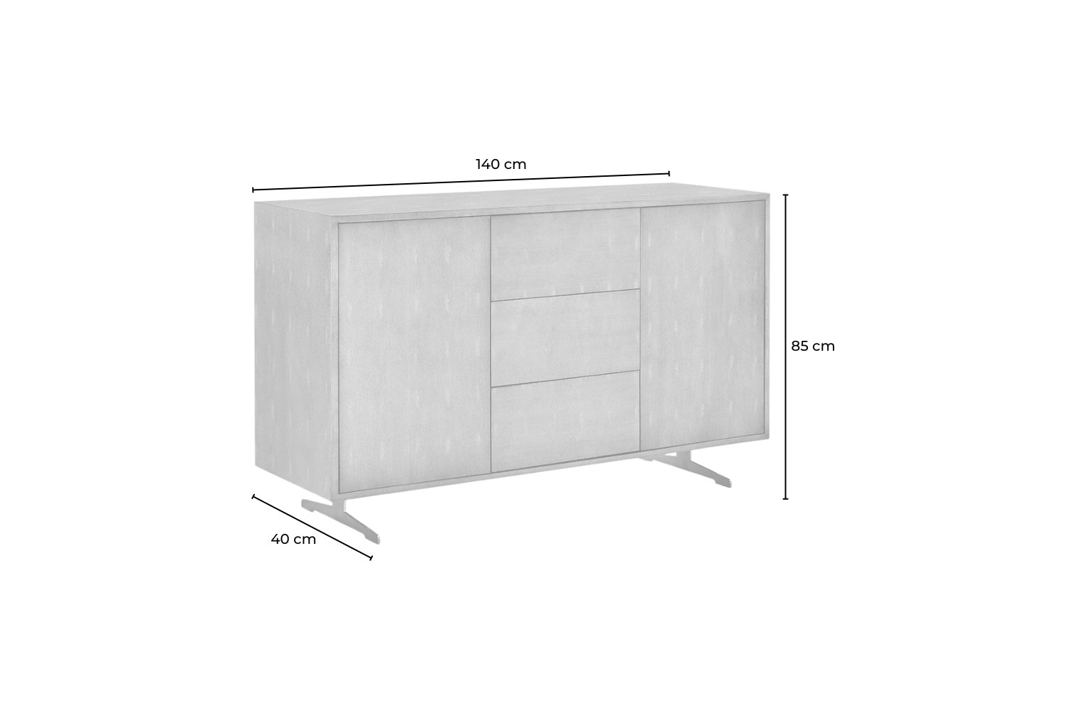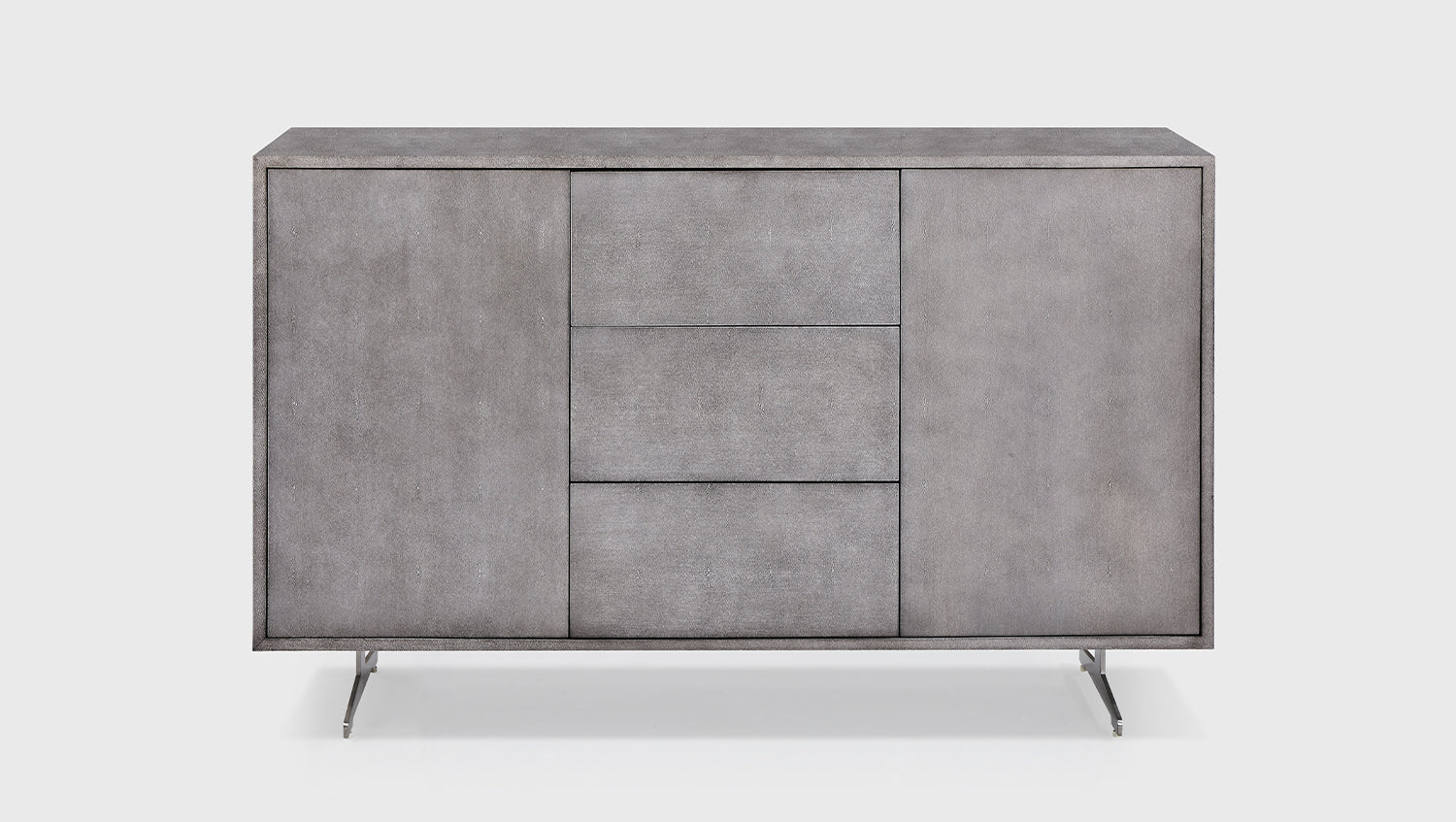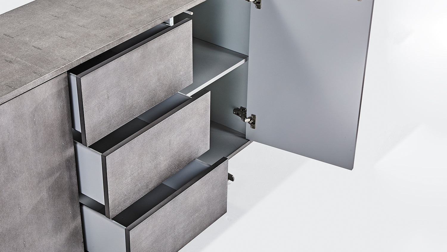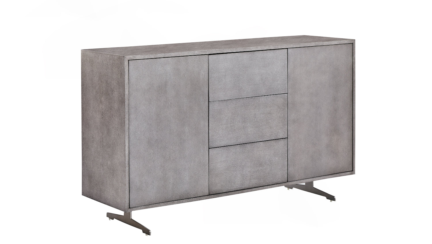 KAWOLA Aparador GALA 2 puertas 3 cajones piel sintética base gris acero inoxidable cepillado