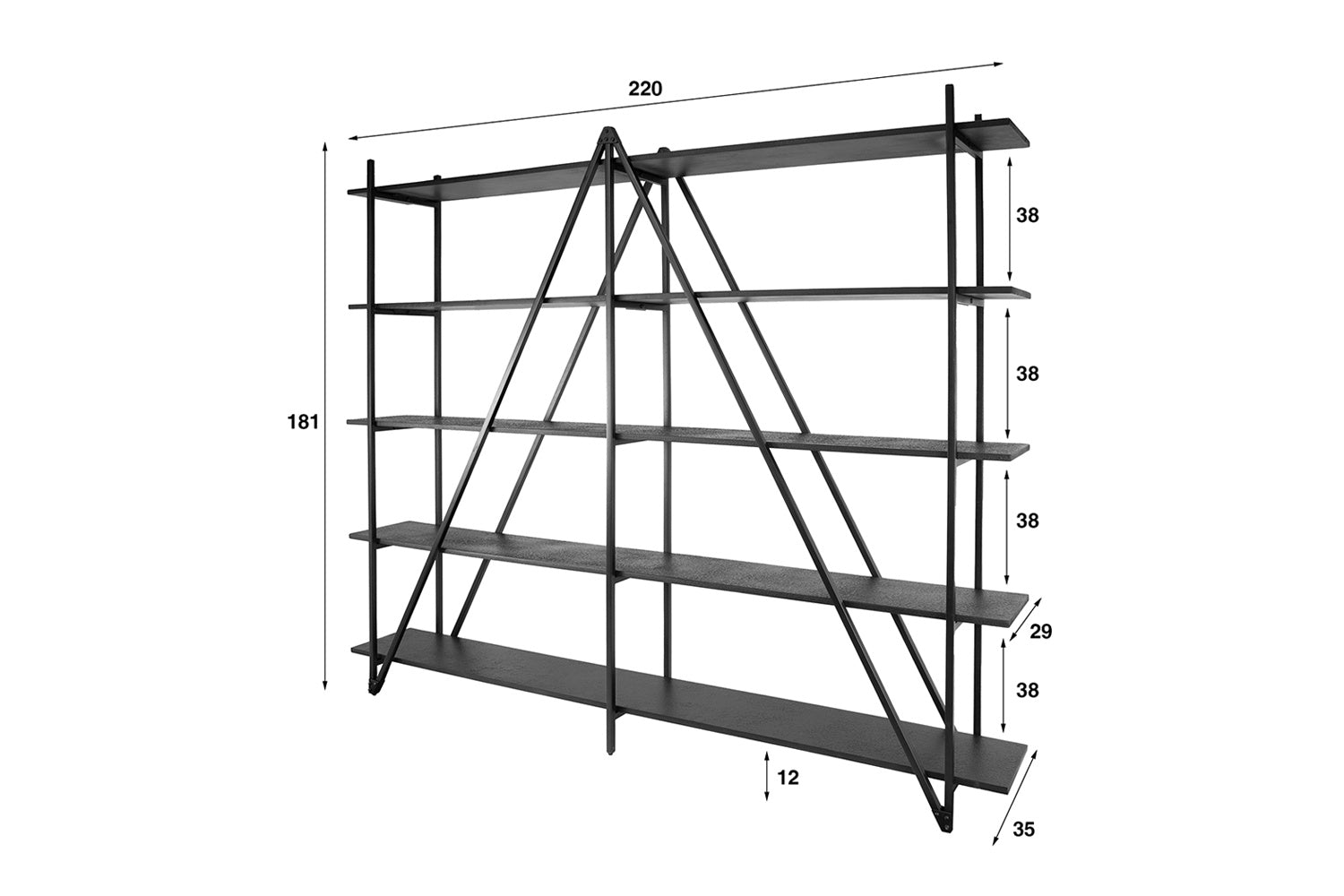 • Material: estantes de MDF con revestimiento de metal líquido gris oscuro, estructura de metal gris oscuro.