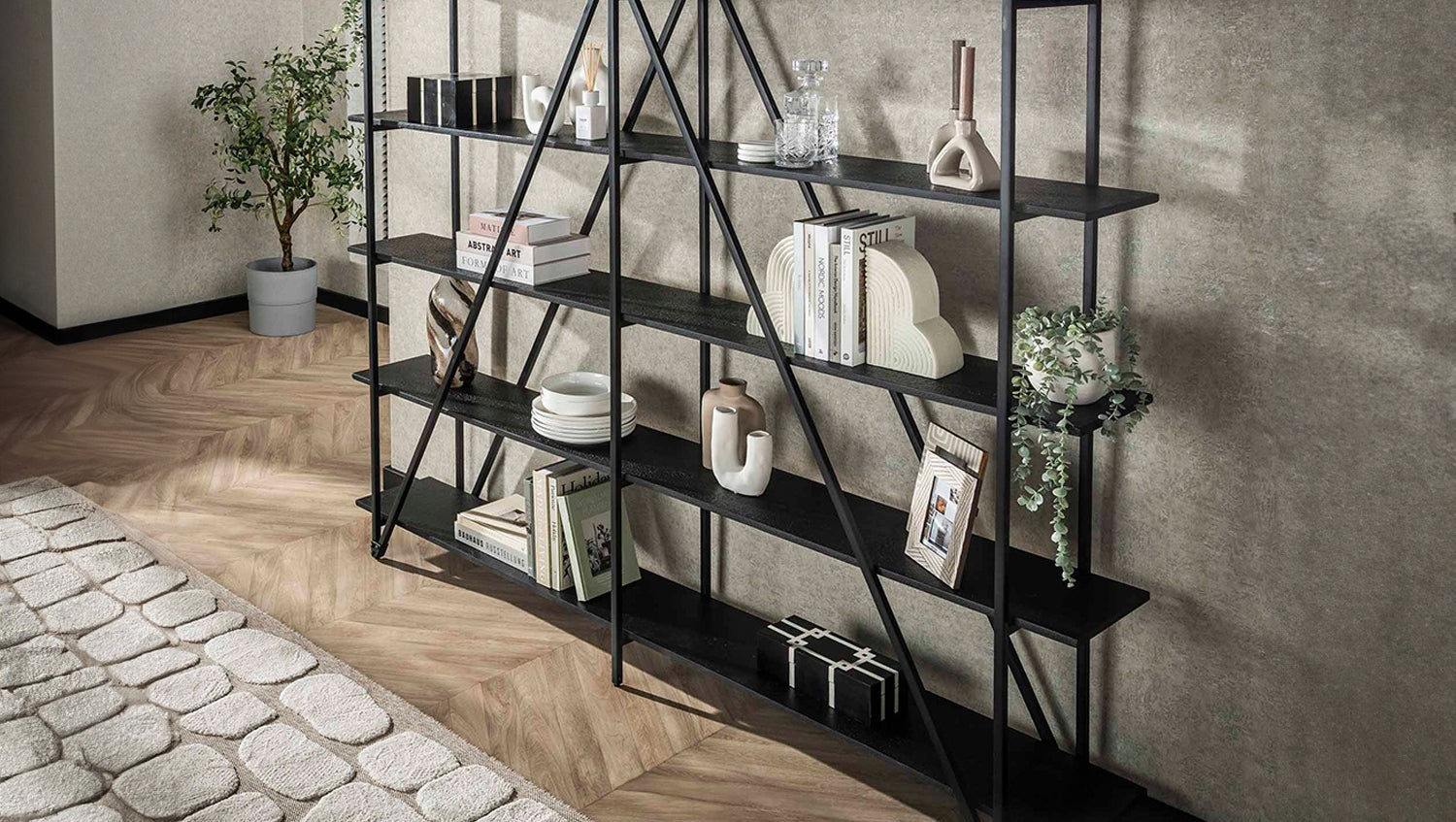 • Función: Amplios compartimentos para libros, adornos y objetos
