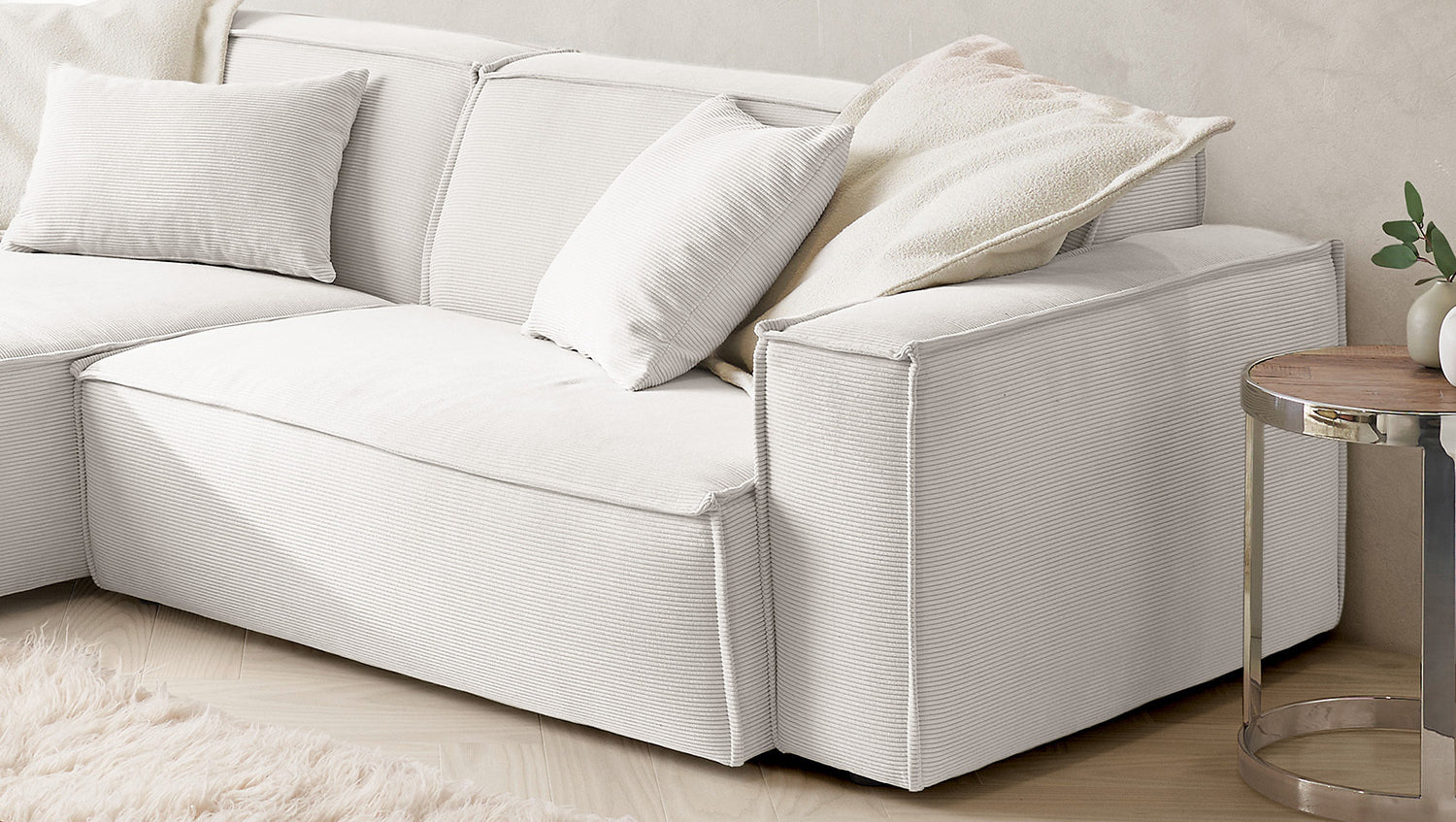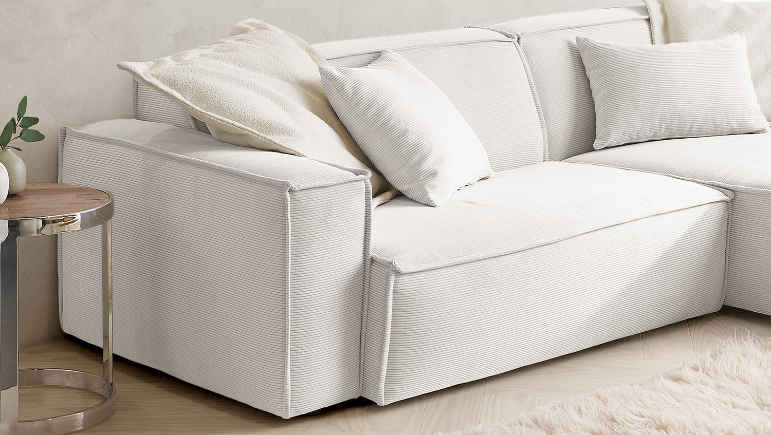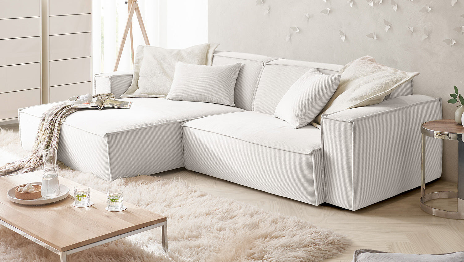 KAWOLA Sofá SAMU Sofá esquinero Pana fina blanco
