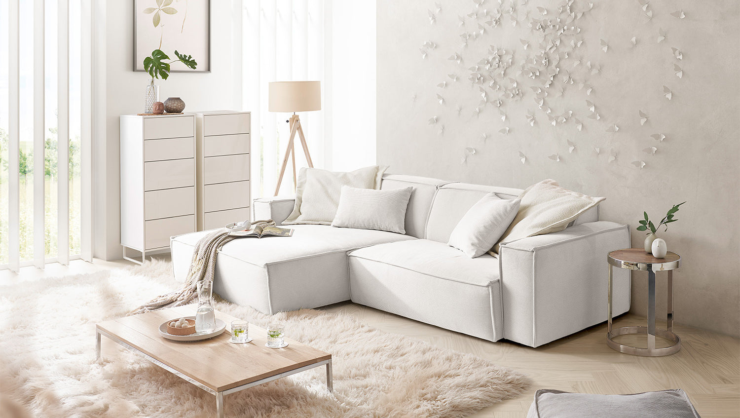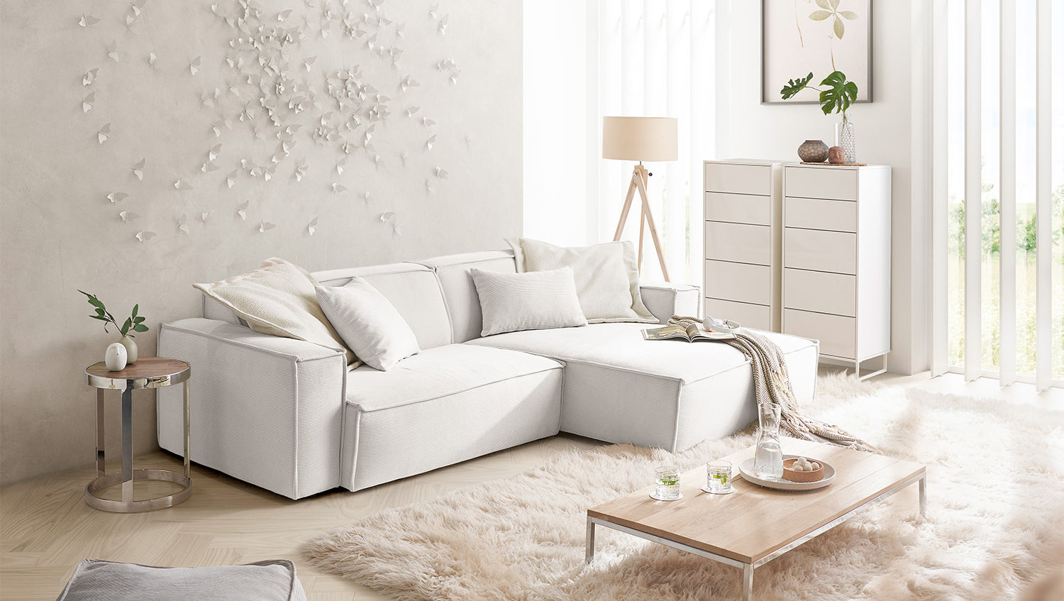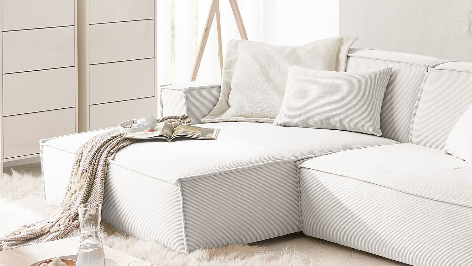 KAWOLA Sofá SAMU Sofá esquinero Pana fina blanco
