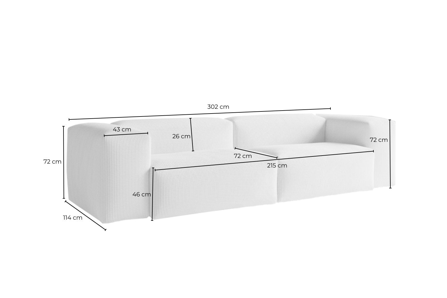 • Asiento profundo (72 cm) para un confort excepcional