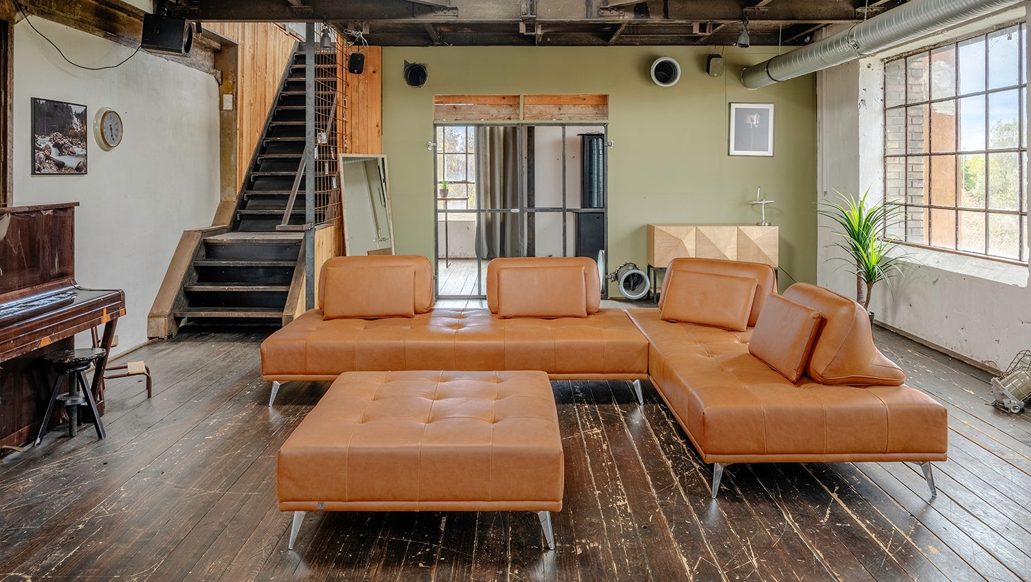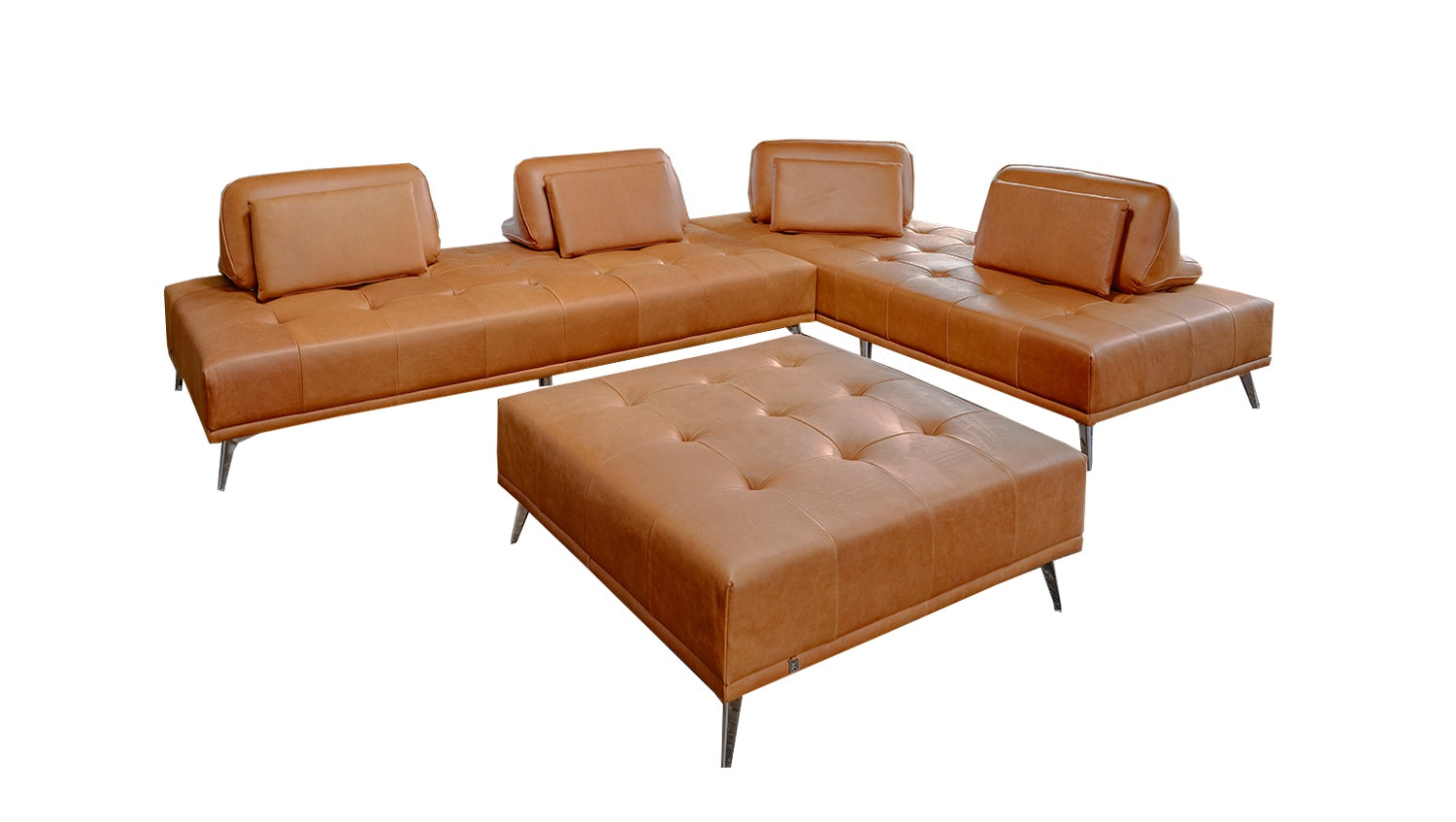 KAWOLA Sofá WIOLO Sofá esquinero de cuero con Puf coñac