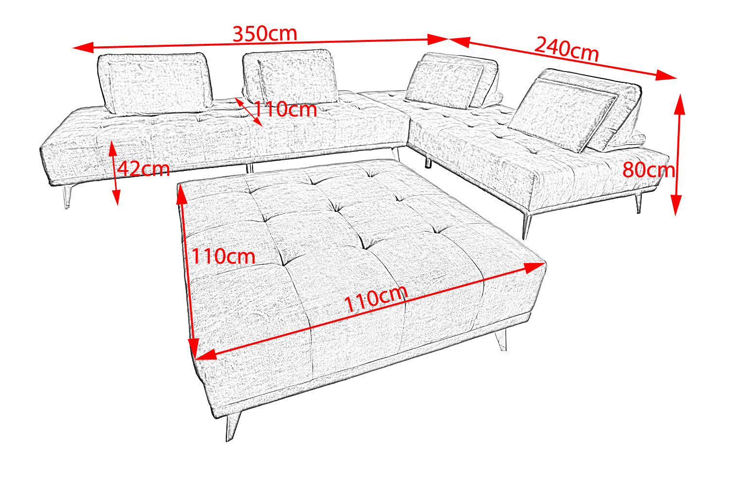 1 sofá, 1 Puf, 8 cojines