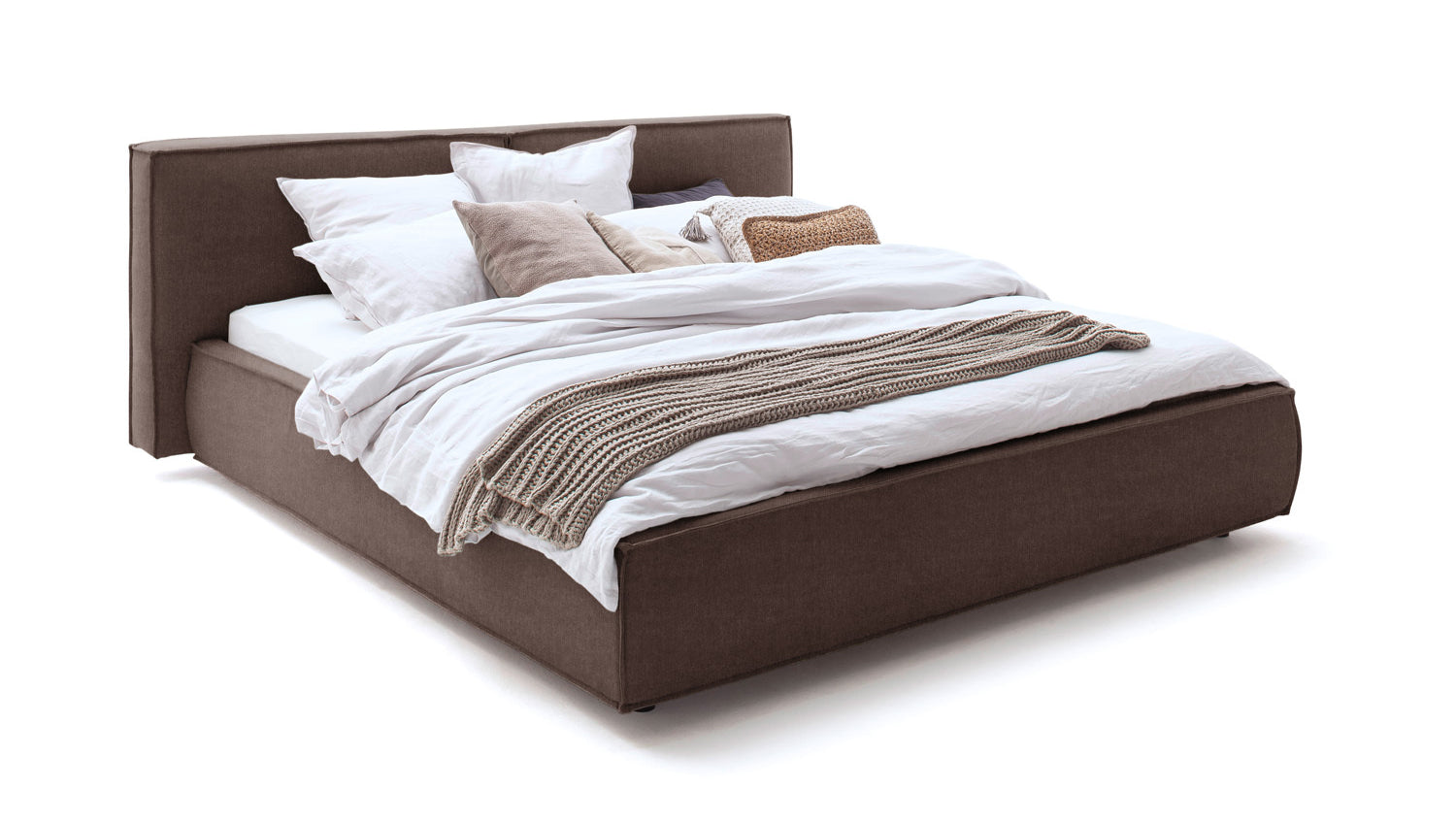 KAWOLA cama CARLO cama tapizada tela marrón