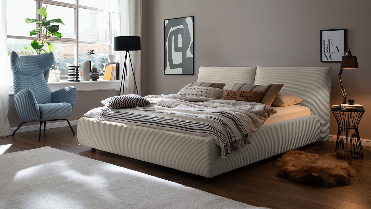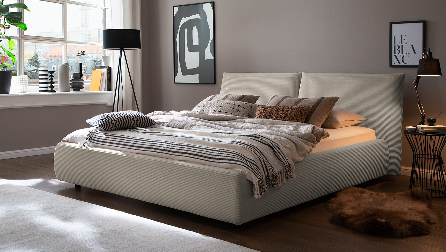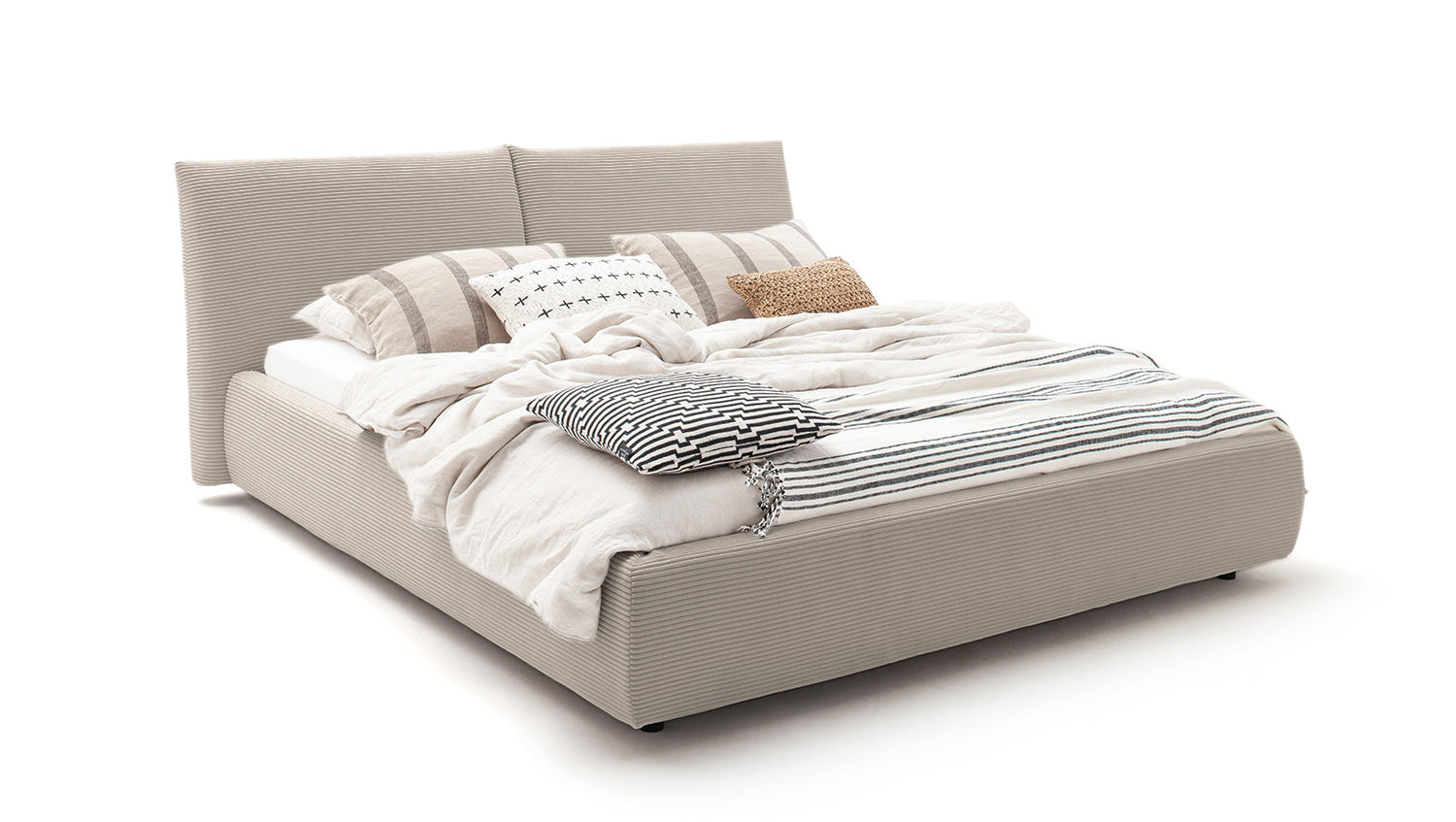 KAWOLA cama HENRY cama tapizada Pana gris piedra