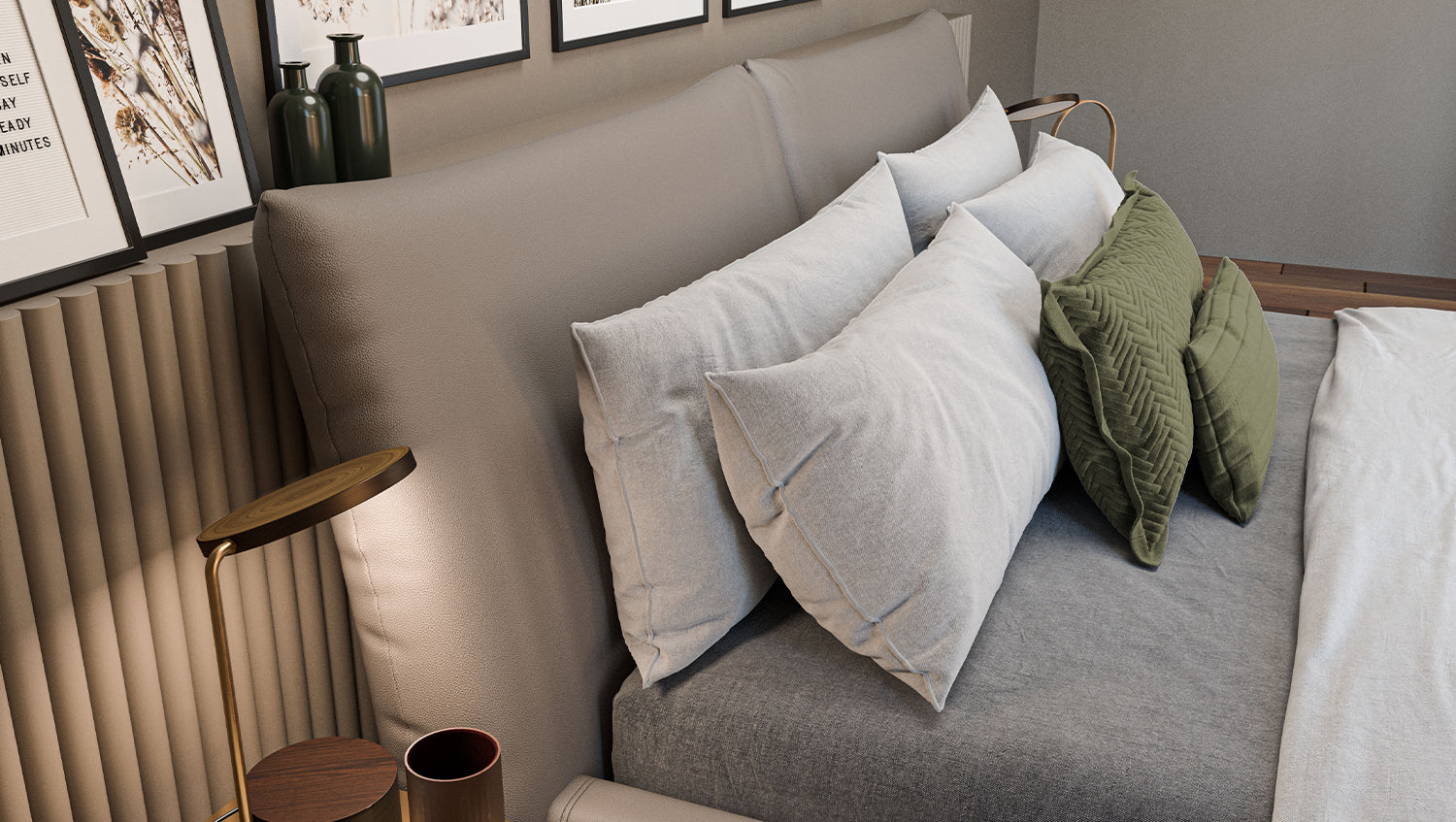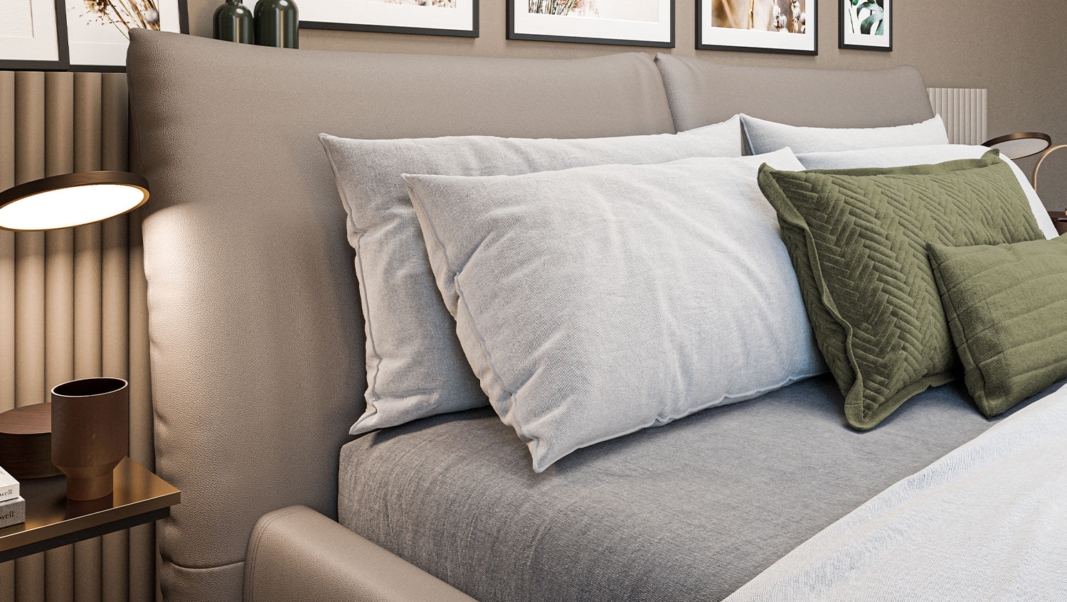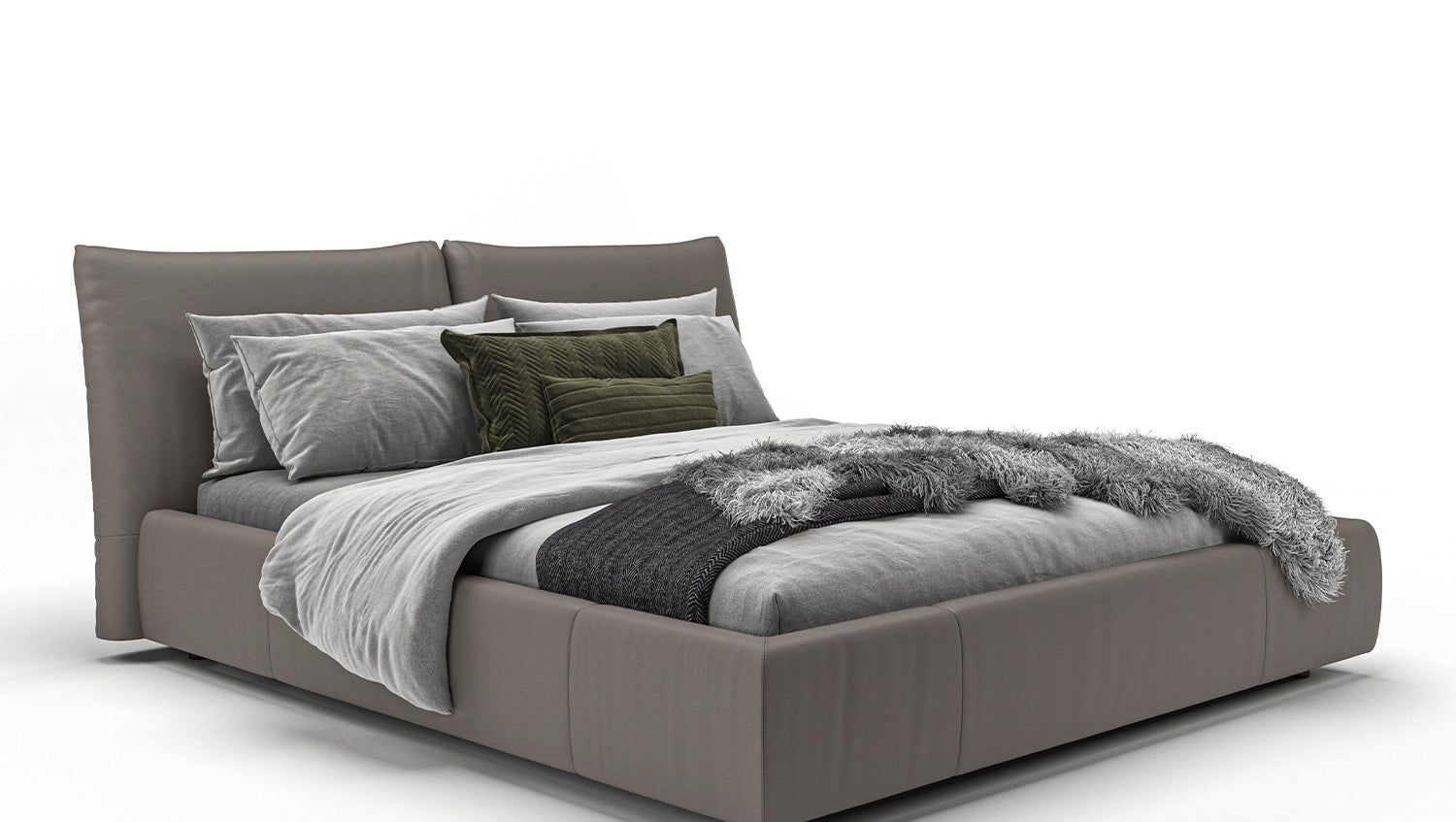 KAWOLA cama HENRY cama tapizada de cuero gris
