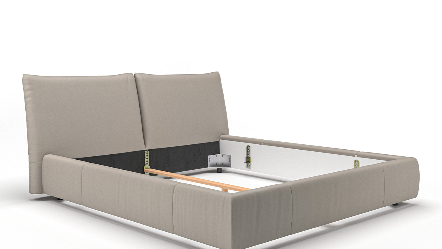 KAWOLA cama HENRY cama tapizada de cuero gris claro