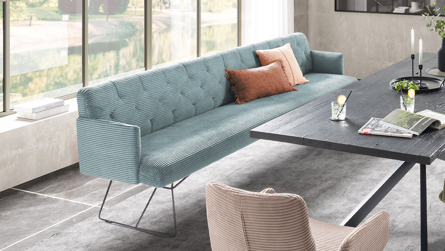 Banco de comedor KAWOLA CHARME Pana azul claro