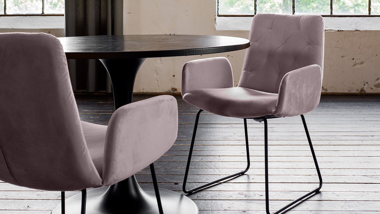 Silla de comedor KAWOLA NEW CHARME Terciopelo gris rosa