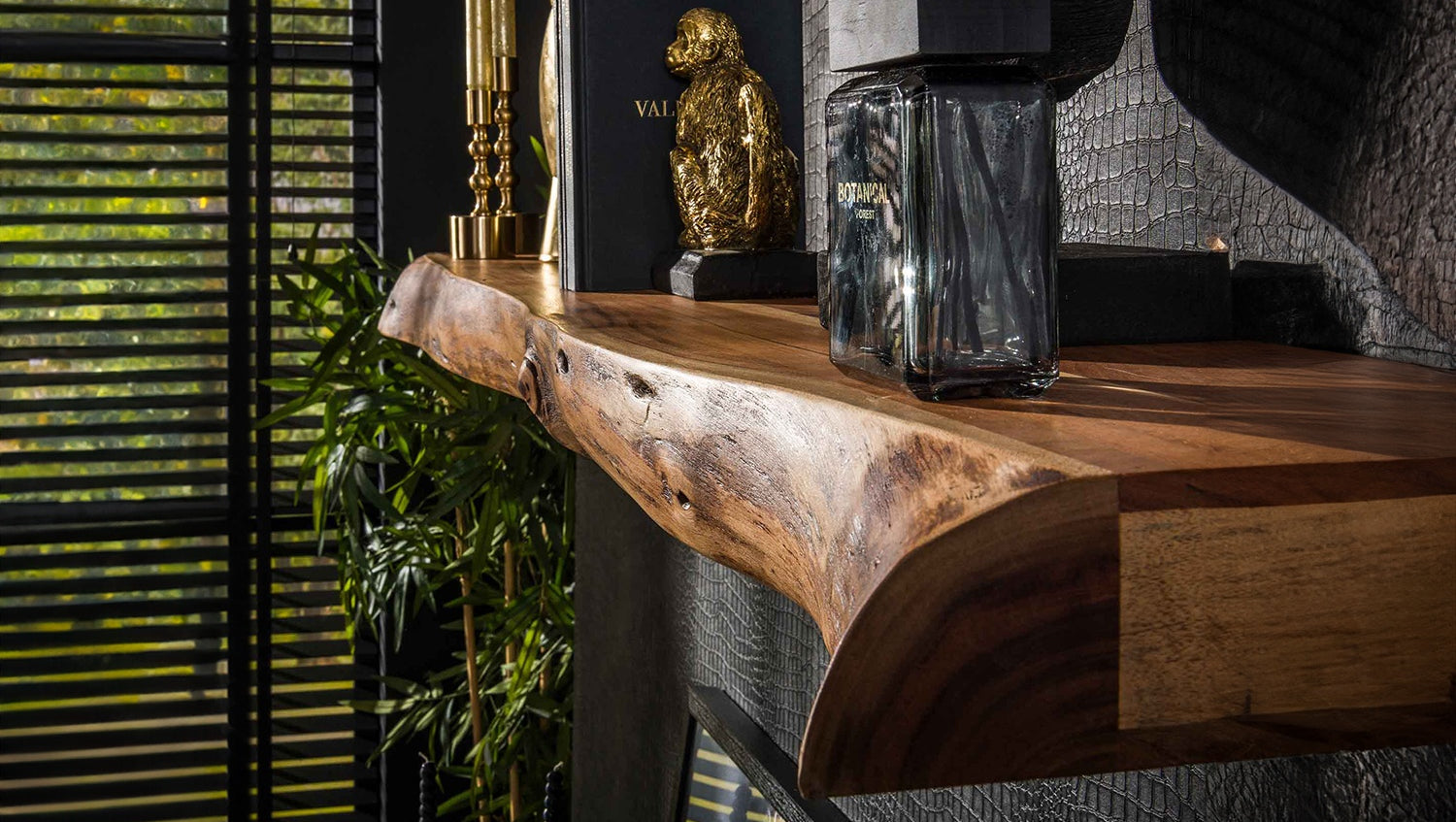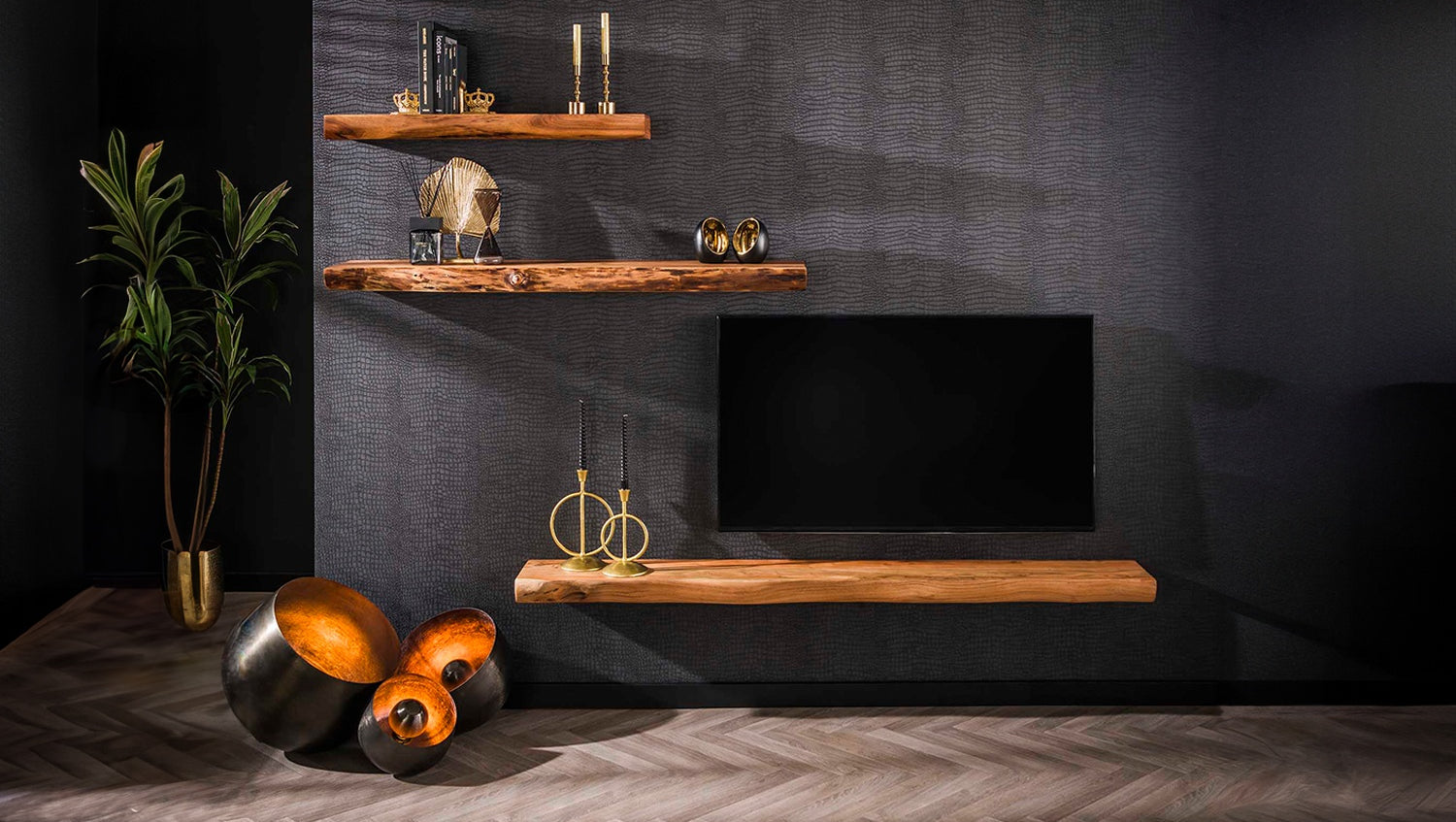 La estantería de pared KAWOLA SESA de 150 cm está fabricada en madera de acacia maciza y tiene un acabado lacado transparente mate, que resalta su belleza natural. El tablón de 8 cm de grosor tiene un borde de árbol auténtico que confiere a la estantería un aspecto característico de tronco de árbol, aportando un toque de naturaleza a su hogar. La estantería se fija a la pared con tres tacos de madera, lo que garantiza un ajuste firme y estable. Con sus 150 cm de longitud, ofrece mucho espacio para adornos u objetos prácticos.