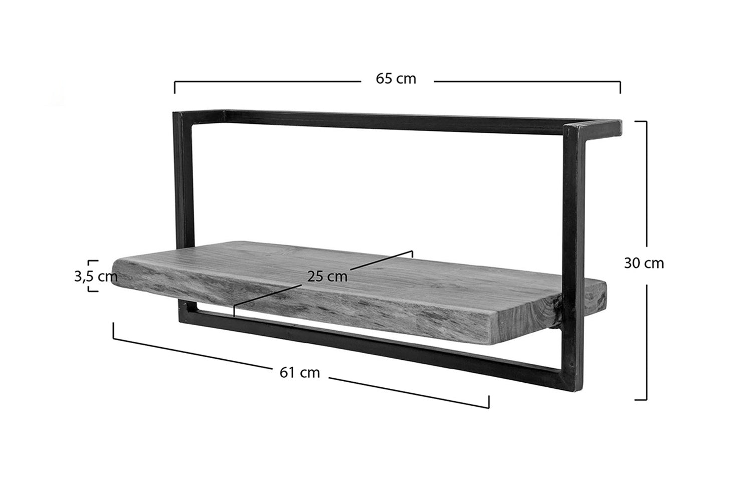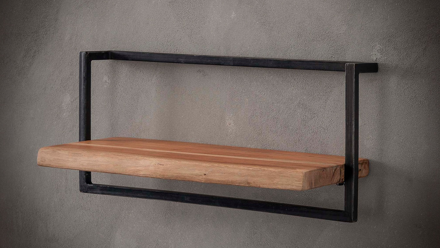 La estantería de pared KAWOLA ERGEA de 65 cm es una combinación perfecta de estética natural y diseño industrial. Consta de una balda de 61 cm de ancho de madera maciza de acacia, cuyos extremos tienen una robusta forma de tronco de árbol lijado que crea un aspecto auténtico y único. La plancha de madera está rodeada por un robusto marco de acero vintage, que confiere a la estantería su carácter inconfundible. La instalación es sencilla y segura en la pared gracias a dos ojales de fijación.