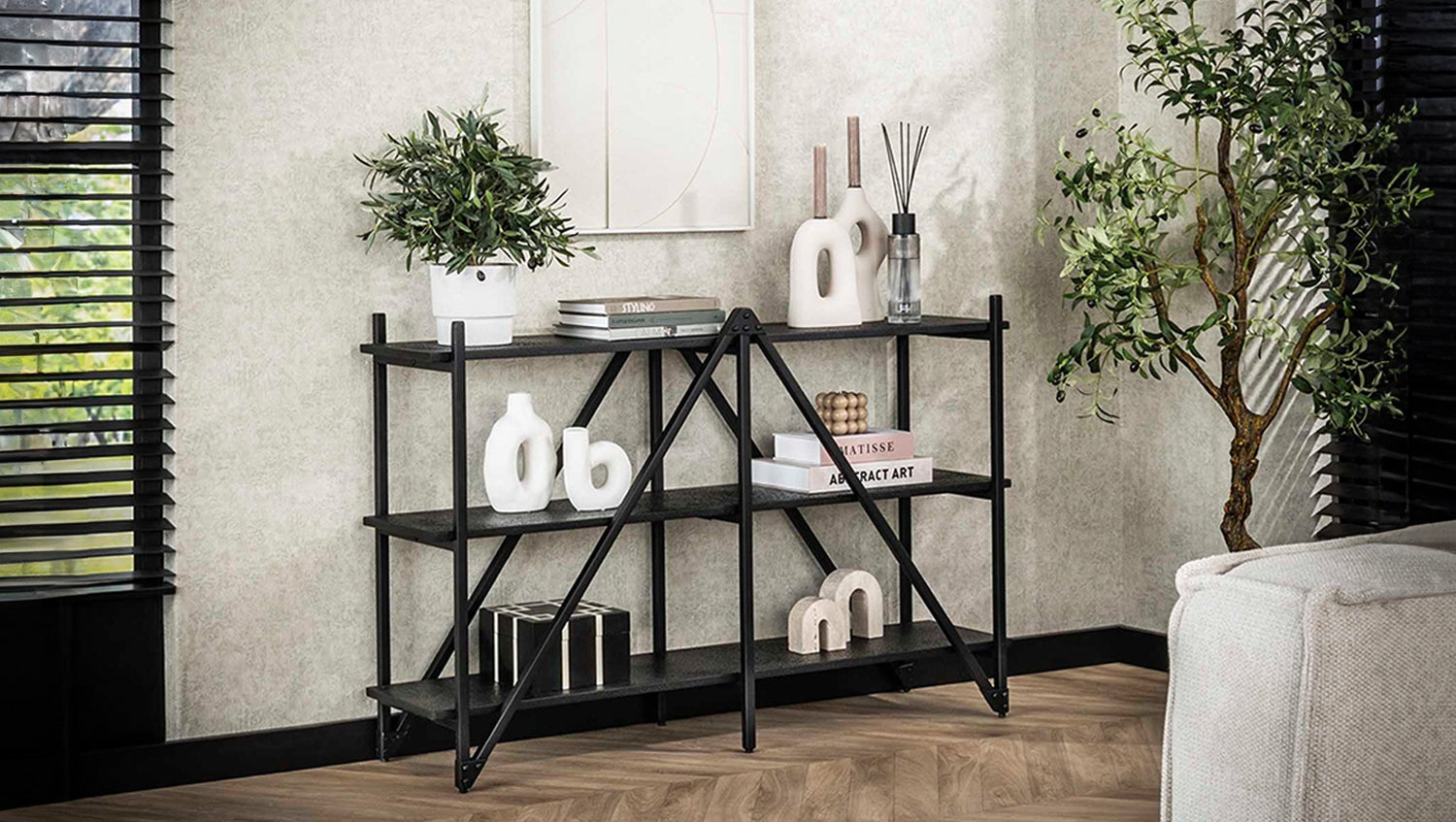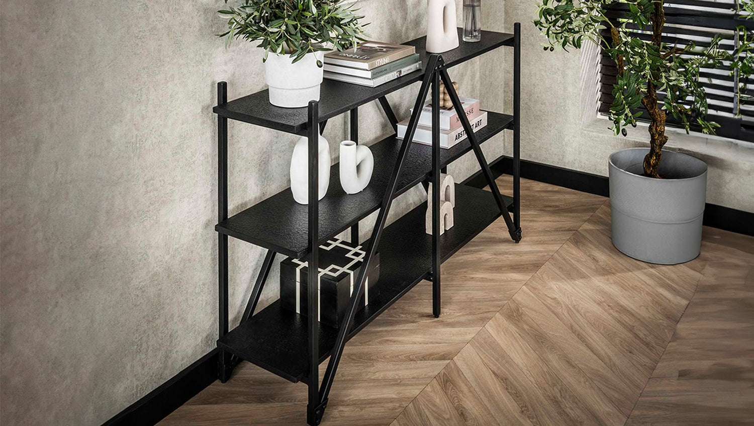 La estantería de pared KAWOLA PEARA 130 cm es una estantería de 3 niveles hecha de madera MDF con un revestimiento de metal líquido gris oscuro y un marco de metal gris oscuro a juego. Dispone de tres espaciosos compartimentos para libros, adornos u otros objetos. Como el mueble se entrega desmontado, puede enviarse en un paquete compacto.