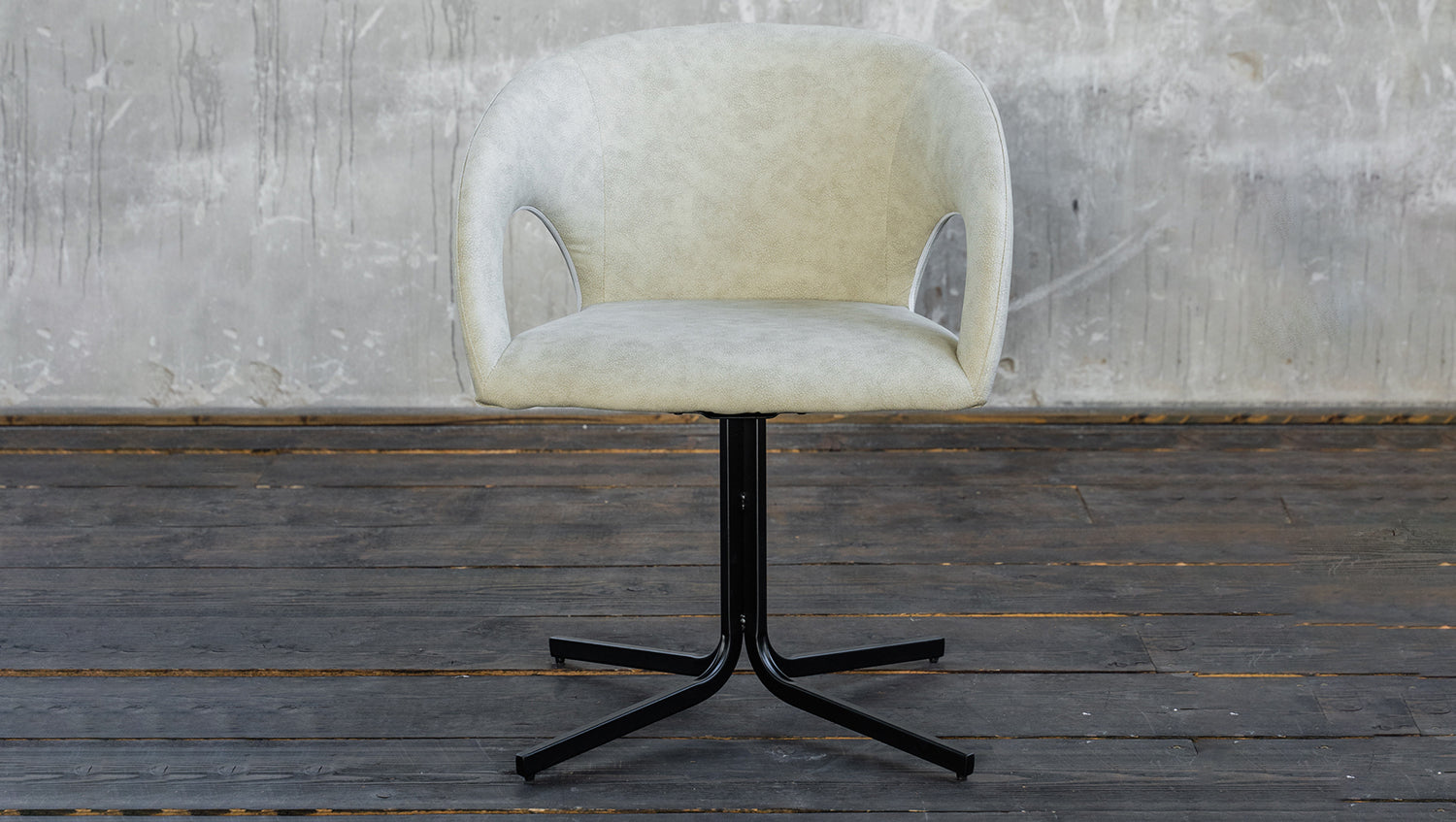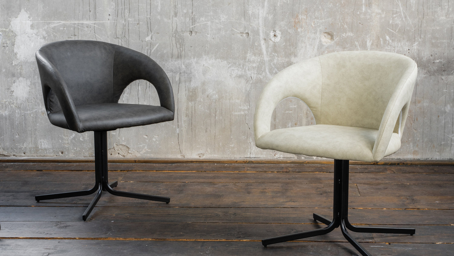 La silla WICOS de KAWOLA impresiona por sus excelentes materiales y su diseño poco habitual. La combinación de la imitación de cuero beige de la carcasa del asiento y los elegantes pies de metal negro crean un conjunto de gran estilo. La silla tiene función giratoria y, por tanto, también es ideal como silla de conferencias. La limpieza de la silla es sencilla, ya que la imitación de cuero de fácil cuidado se limpia fácilmente con un paño húmedo. La forma y el tapizado de la silla garantizan un agradable confort de asiento. La silla WICOS combina diseño moderno y funcionalidad.