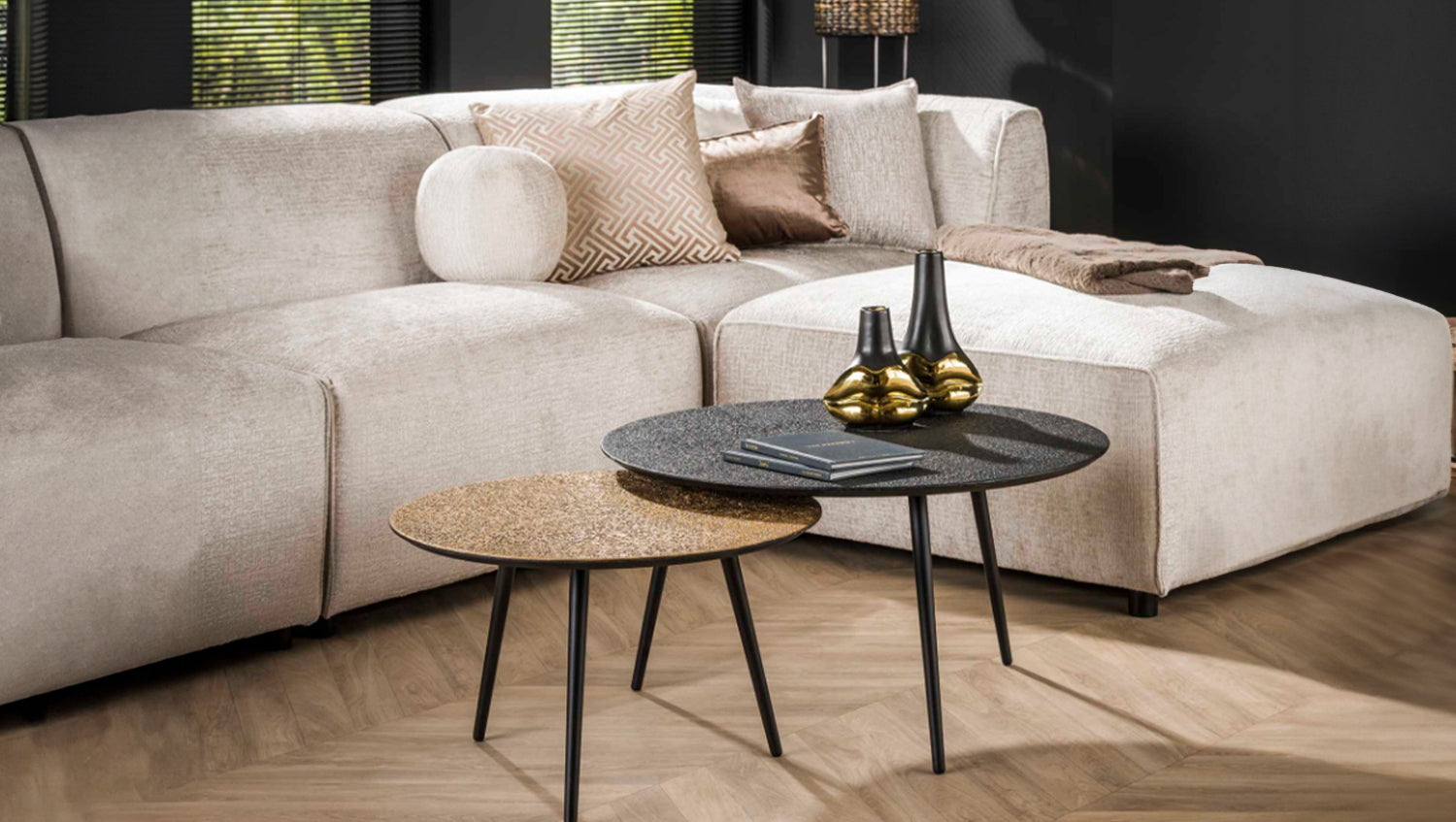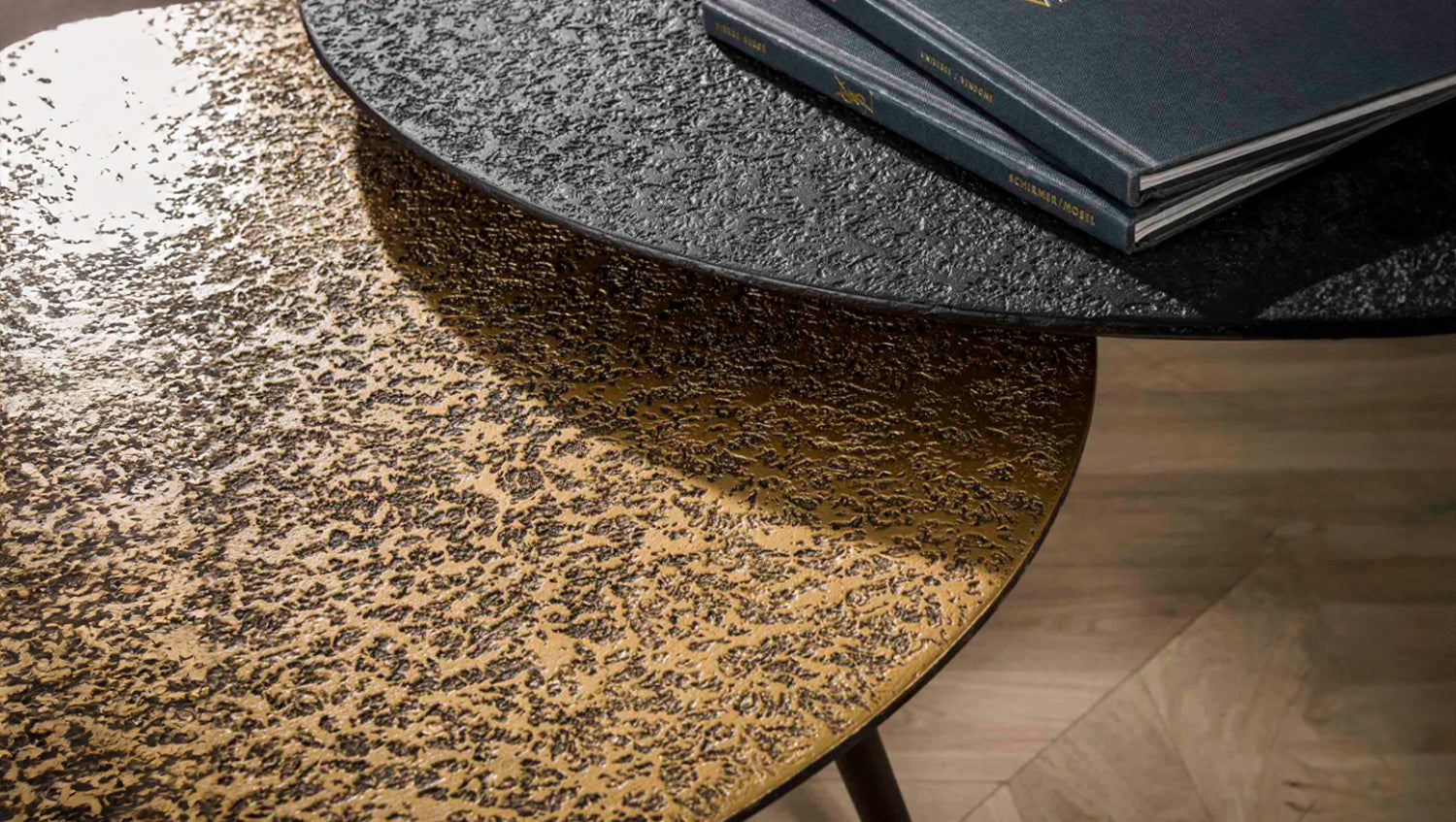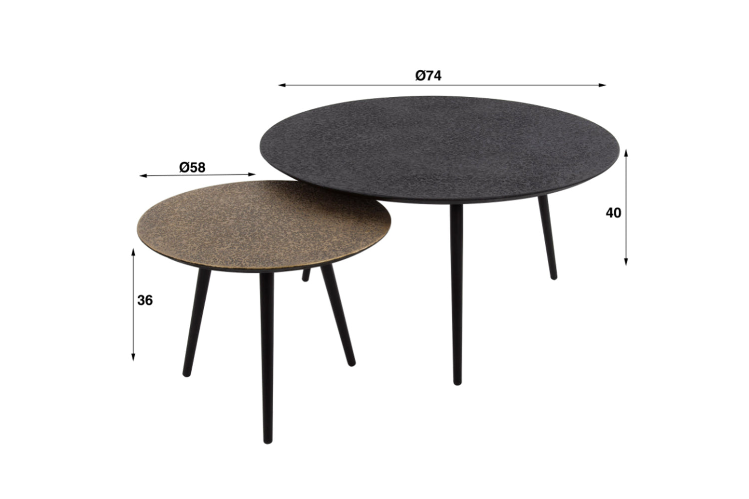 KAWOLA LAUCA juego de mesa de centro 2 piezas metal negro / bronce redondo