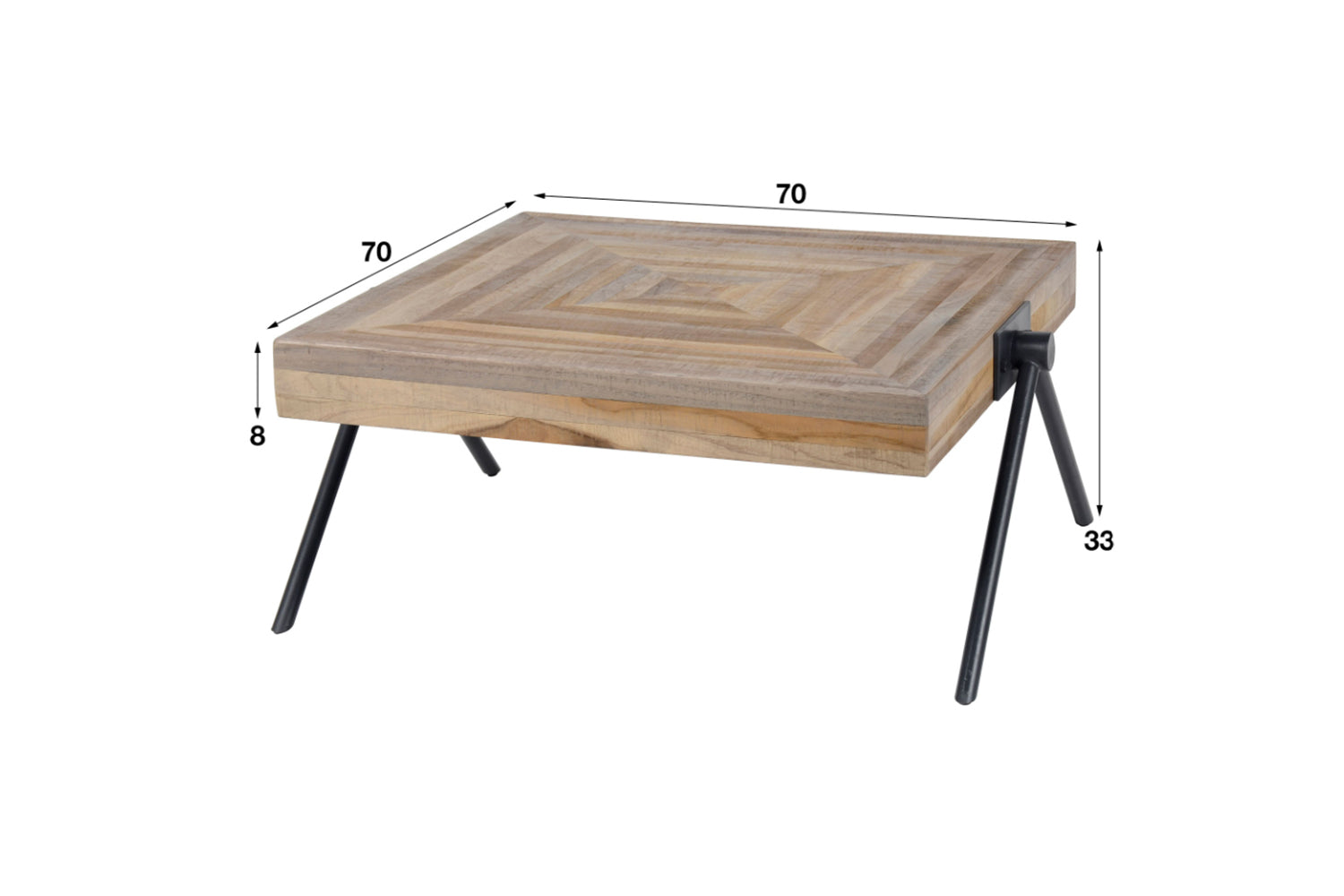 La mesa de centro WILLY de KAWOLA impresiona por su acertada combinación de elegancia natural y diseño moderno. El tablero es cuadrado y tiene un grosor de 8 cm. Está hecho de teca desgastada, que se ha procesado en rayas para dar a la mesa de centro un patrón hermoso e inusual. El marco de acero continúa en el lateral y le da un aspecto más duro. Con una superficie de 70x70 cm y una altura de 33 centímetros, la mesa de centro encaja a la perfección en diferentes estilos de vivienda y se convierte en la pieza central con estilo de cualquier interior. Ya sea en un moderno loft, en un acogedor salón o en una elegante sala de estar, la mesa de centro WILLY pone acentos de estilo y combina funcionalidad con una estética atemporal. Una auténtica declaración de diseño para una vida sofisticada.